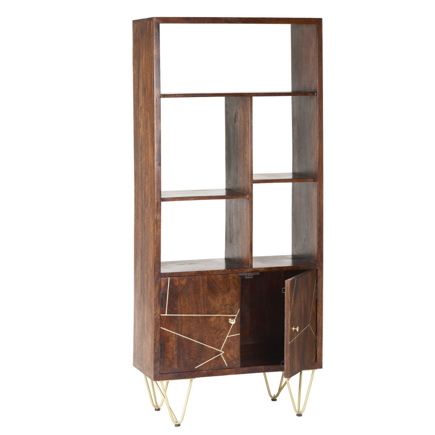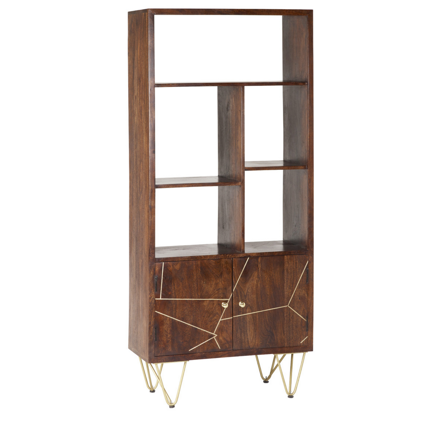 This modern contemporary style furniture combining metal inlay on solid wood creating an abstract style, taking the furniture making to a whole new level. The angled legs made of metal adds to the retro vintage look. Available in two different finishes, light stain or dark stain.