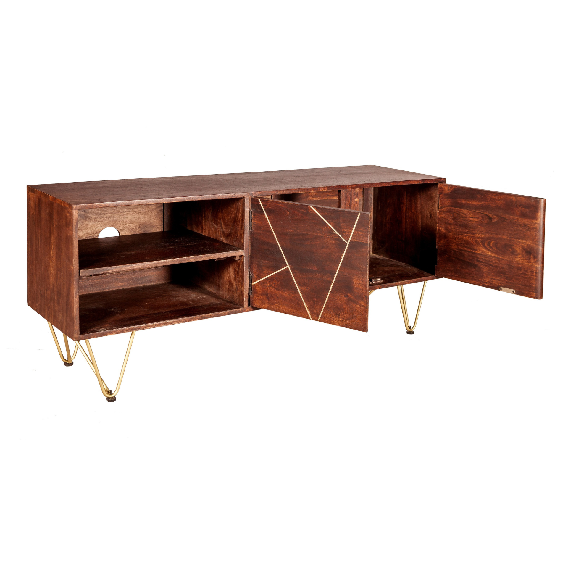 This modern contemporary style furniture combining metal inlay on solid wood creating an abstract style, taking the furniture making to a whole new level. The angled legs made of metal adds to the retro vintage look. Available in two different finishes, light stain or dark stain.