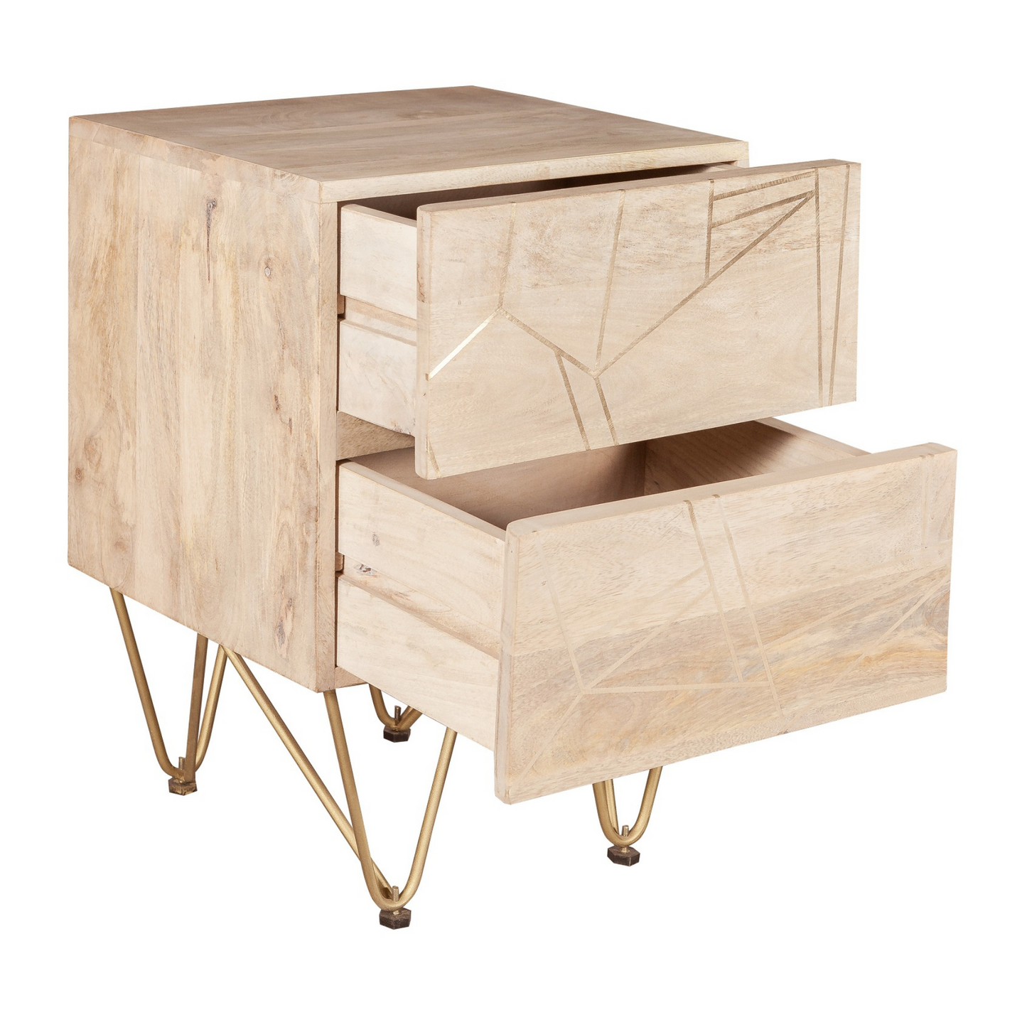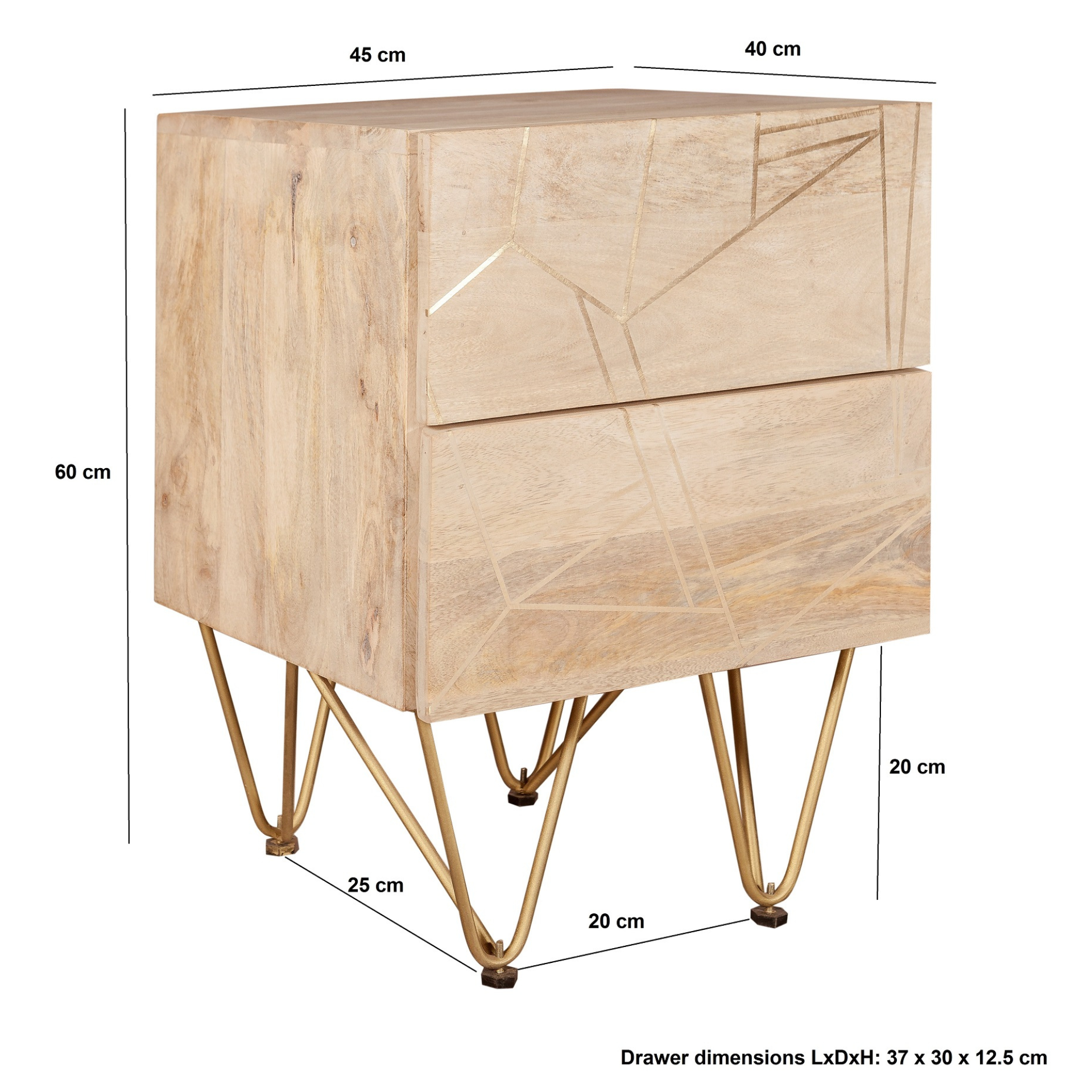 This modern contemporary style furniture combining metal inlay on solid wood creating an abstract style, taking the furniture making to a whole new level. The angled legs made of metal adds to the retro vintage look. Available in two different finishes, light stain or dark stain.