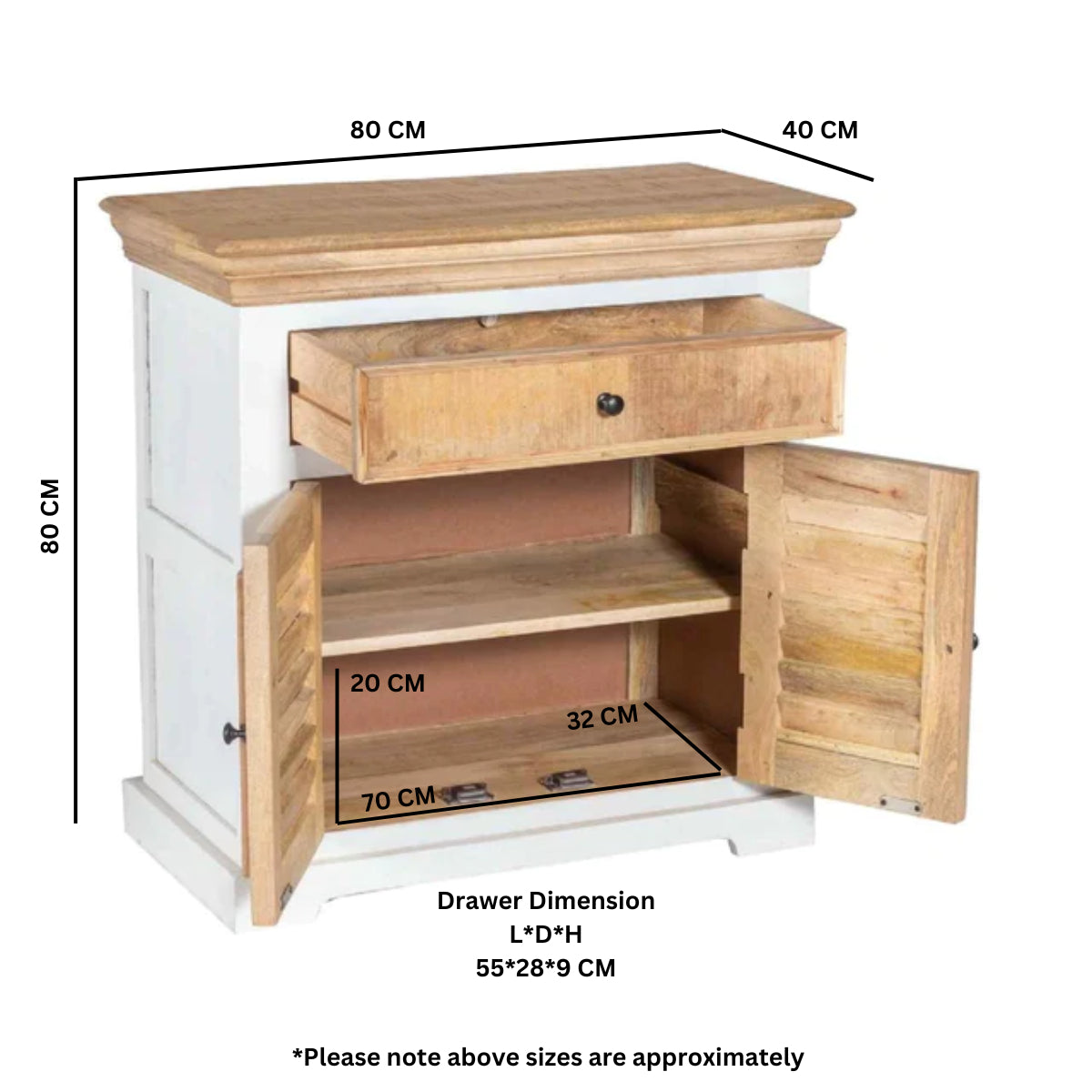 This stunning sideboard will make a beautiful statement in any room of your choosing. Combining a fresh modern look with rustic reclaimed wood and beautifully crafted into a sideboard that will showcase your photos, flowers, ornaments or can be useful in a dining room to store plates / cutlery etc. There are so many options for this item within your home. Handmade by skilled craftsmen in India making each piece individual and unique.