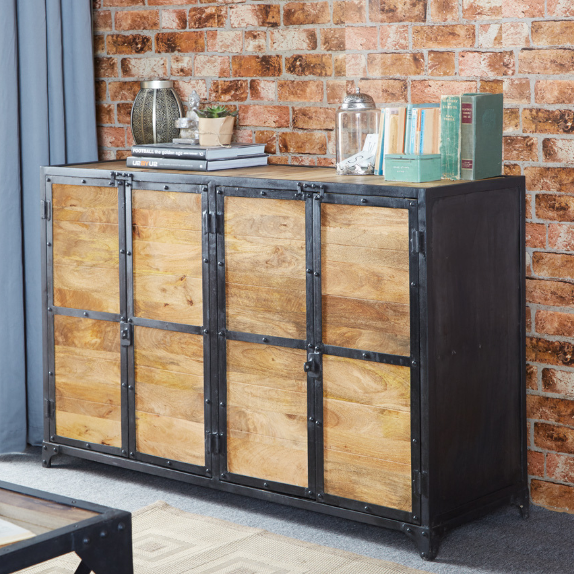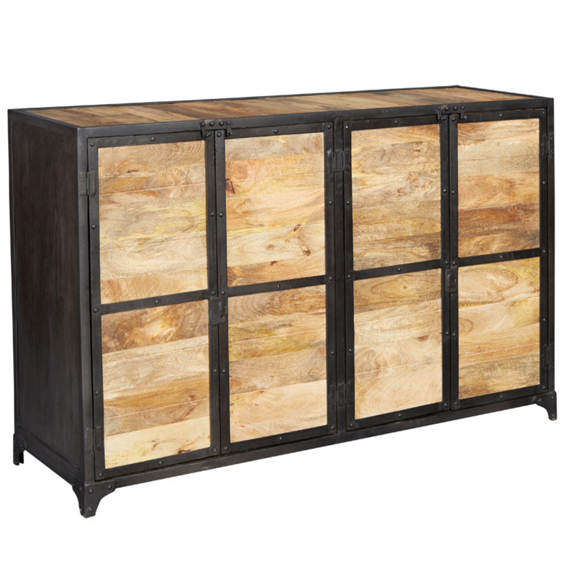 Made from reclaimed metal and wood, this range brings industrial into your home. The light grain hardwood left in its natural state and colour with natural variations and slight cracking with a banded iron edges.