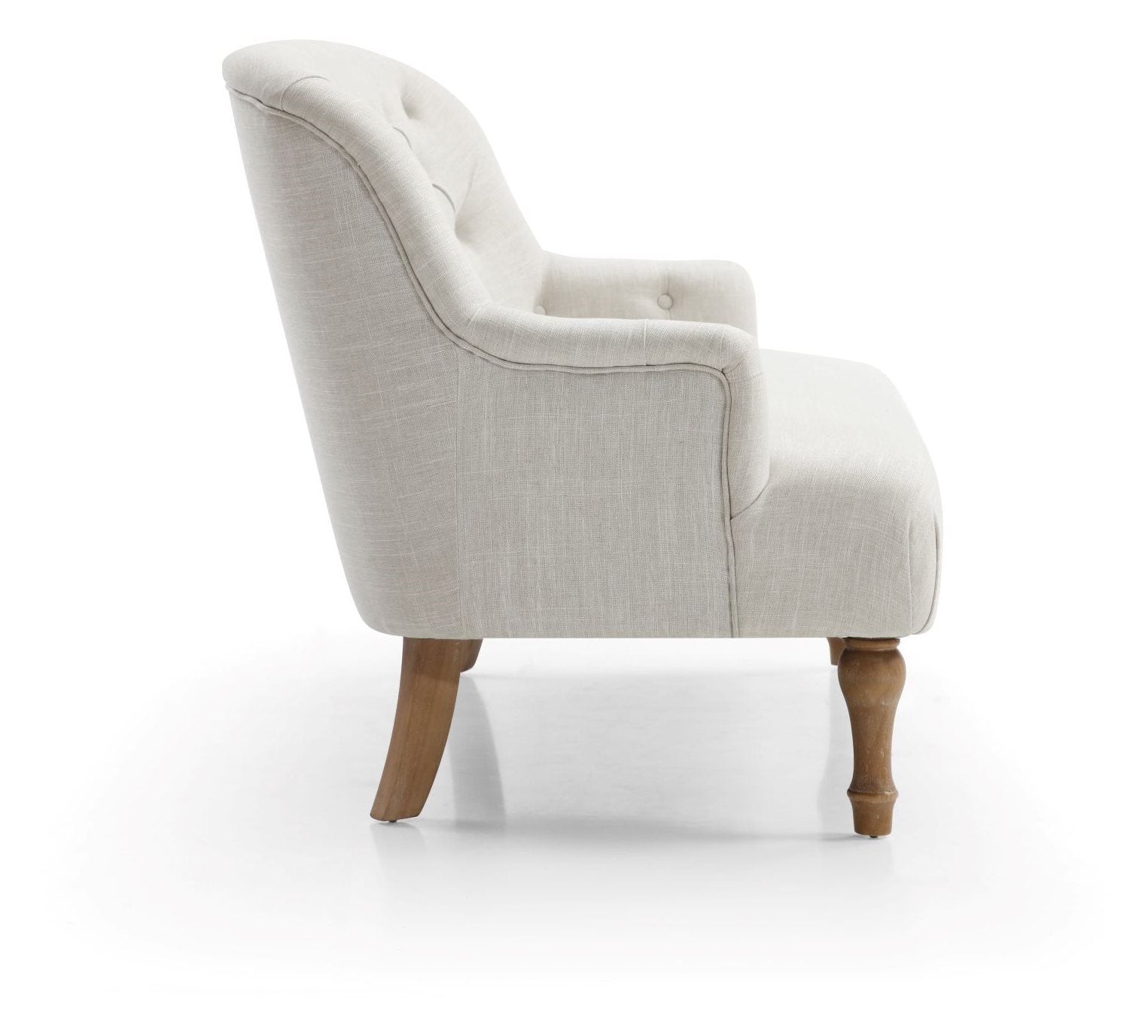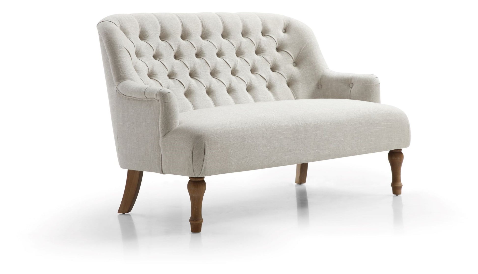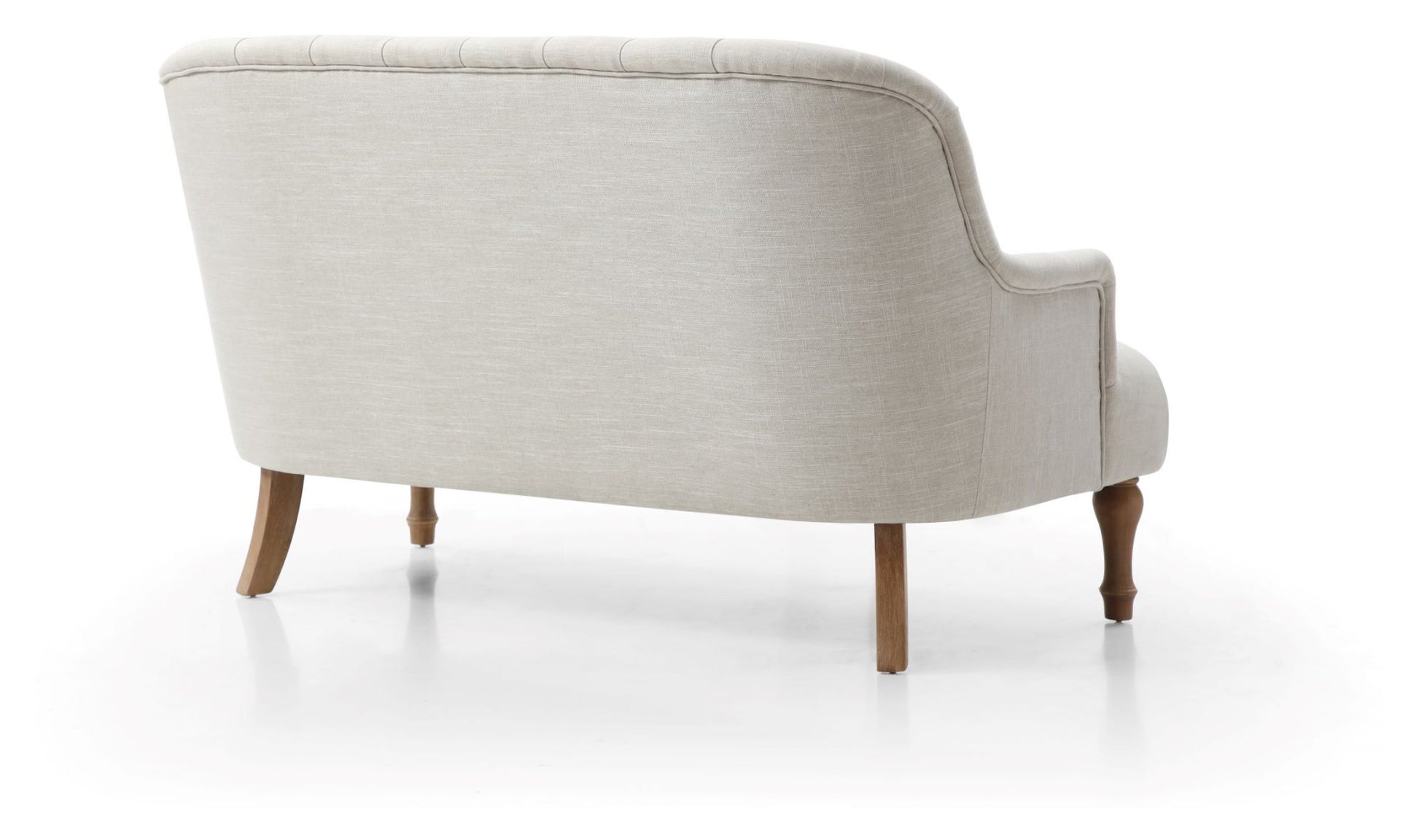 Experience the chic and timeless style of our Bianca 2 seater sofa! Featuring deep tufting and buttons on our cozy, cream linen fabric, this stunning piece is finished with washed oak legs for an elegant touch.