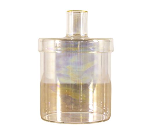 The Brienz Candle Holder Jar offers a stylish solution for storing candles, with the fine gold edging around the top of the opening adding a classy finishing touch. A smaller version is also available. Candles not included.
