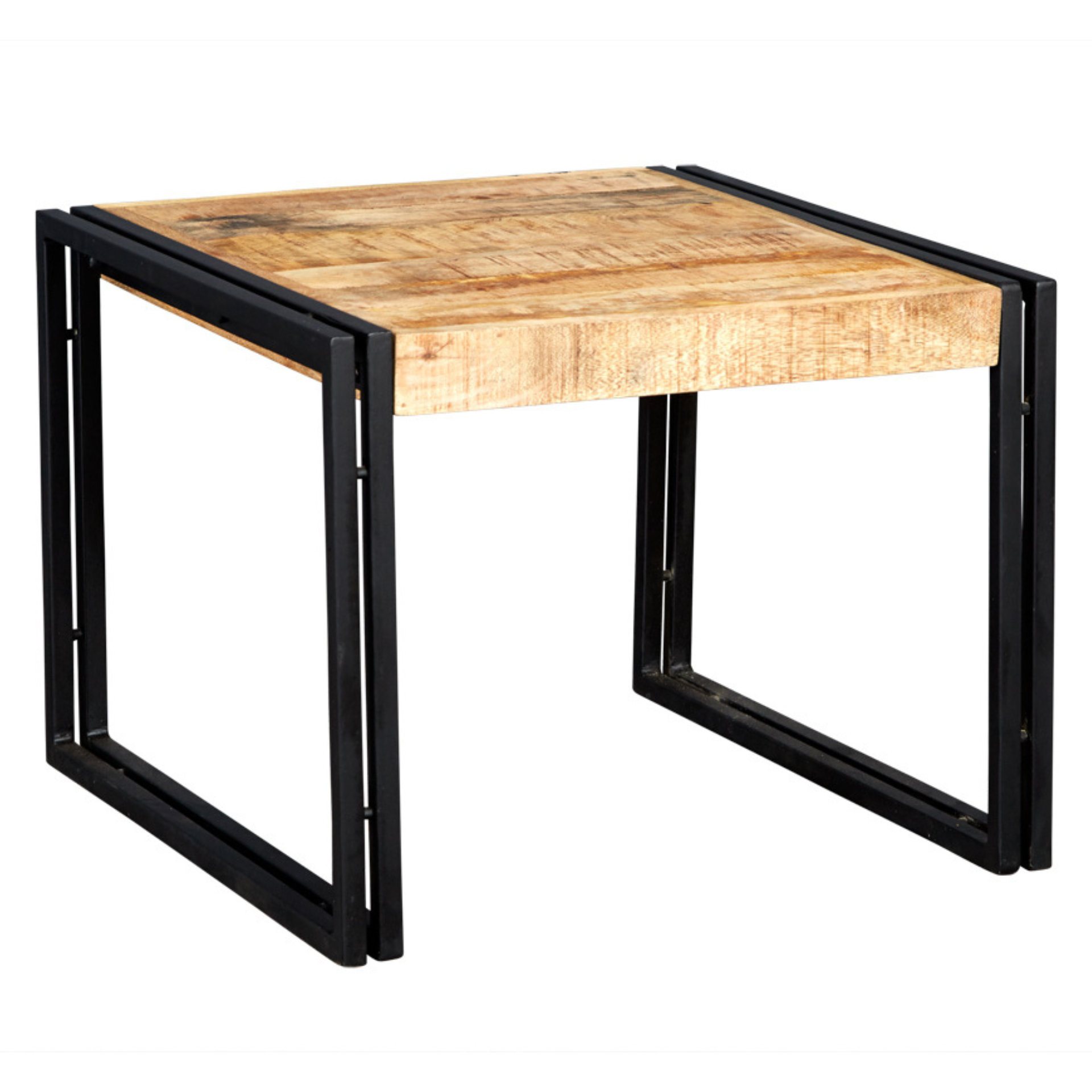 Made from reclaimed metal and wood, this range has generous sizes and will complement any surroundings. The light grain hardwood left in its natural state and colour with natural variations and slight cracking with a banded iron edges.