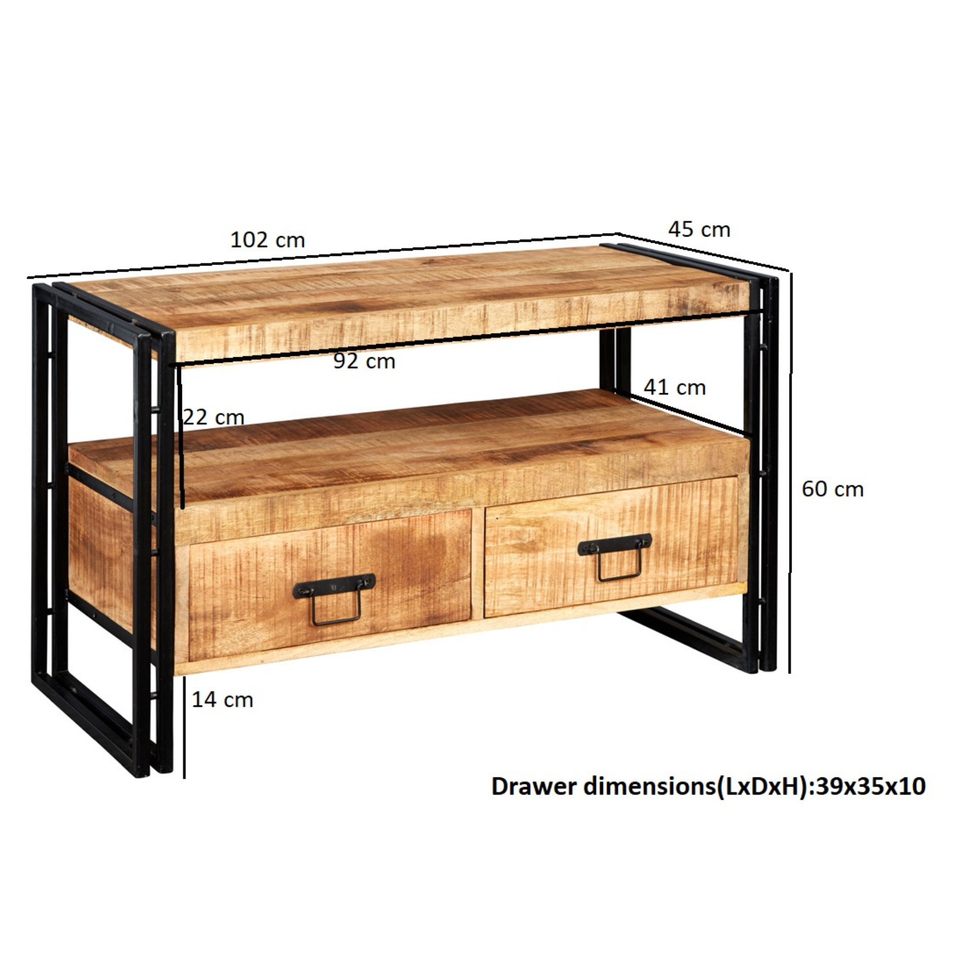 Made from reclaimed metal and wood, this range has generous sizes and will complement any surroundings. The light grain hardwood left in its natural state and colour with natural variations and slight cracking with a banded iron edges.