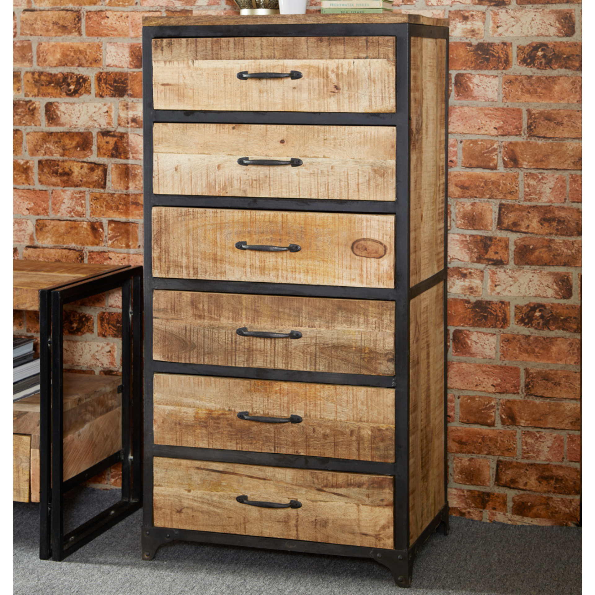 Made from reclaimed metal and wood, this range has generous sizes and will complement any surroundings. The light grain hardwood left in its natural state and colour with natural variations and slight cracking with a banded iron edges.