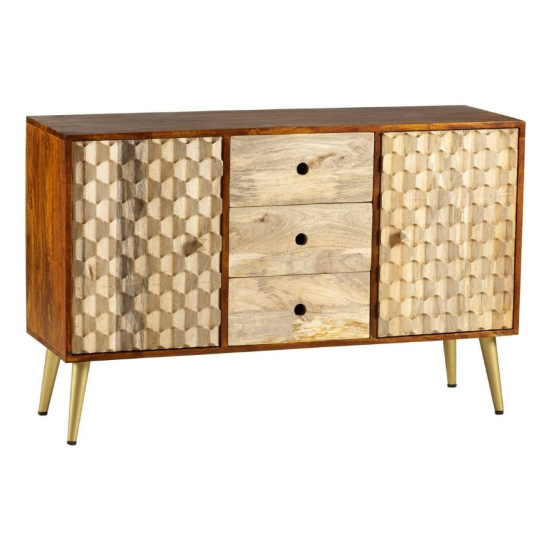 This beautiful, unique range complemented with Scandinavian inspired legs is the perfect choice for a modern retro interior, in combination with other items in the same collection. It will add warmth to your home with its two-tone colour and metal gold legs.
