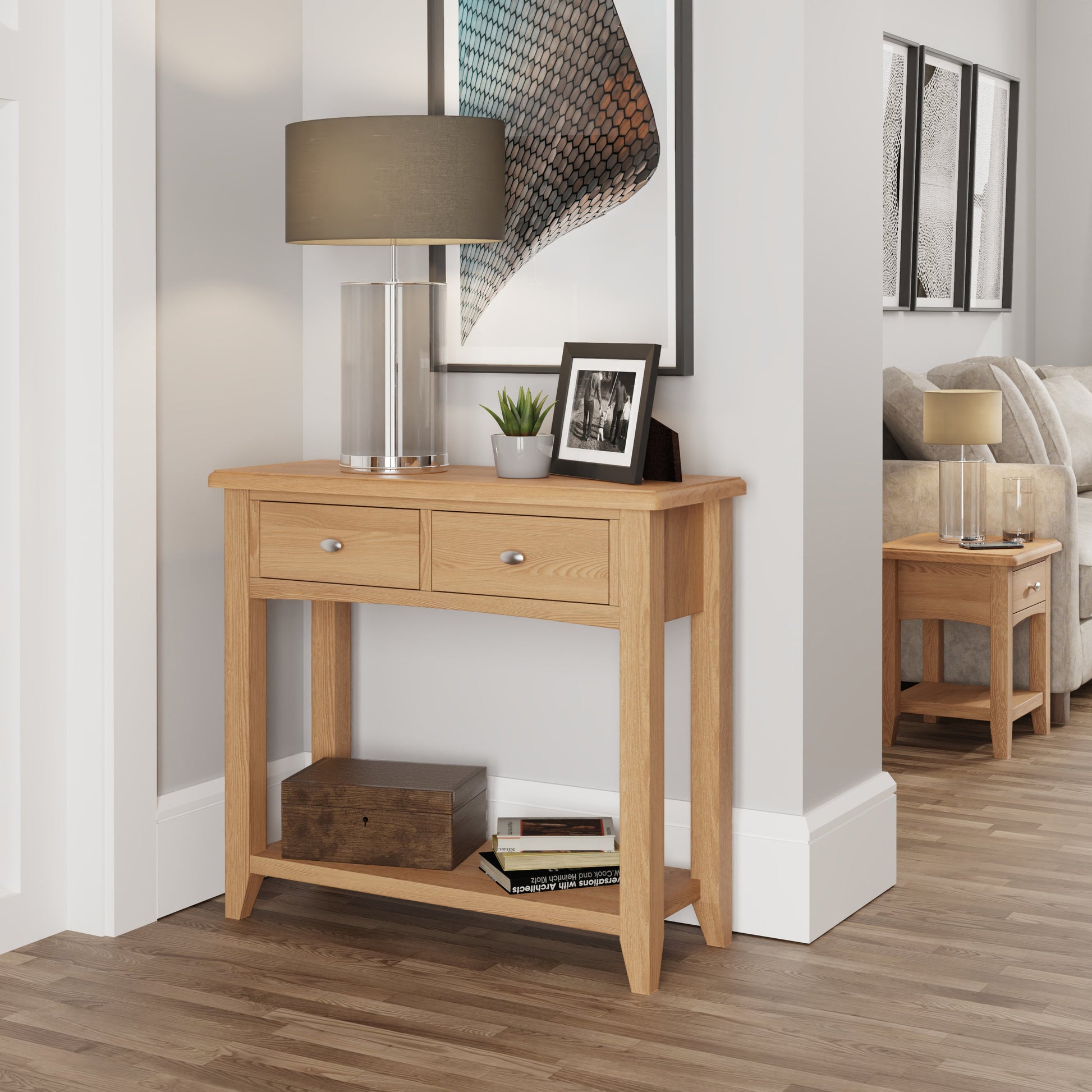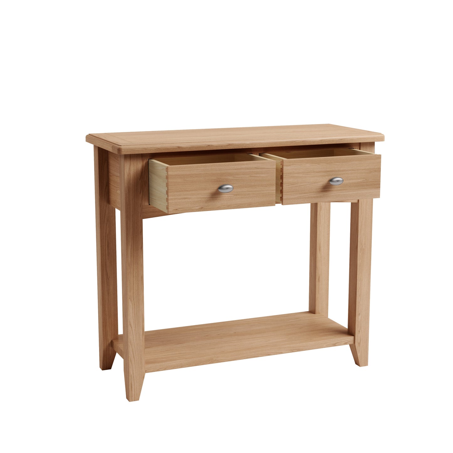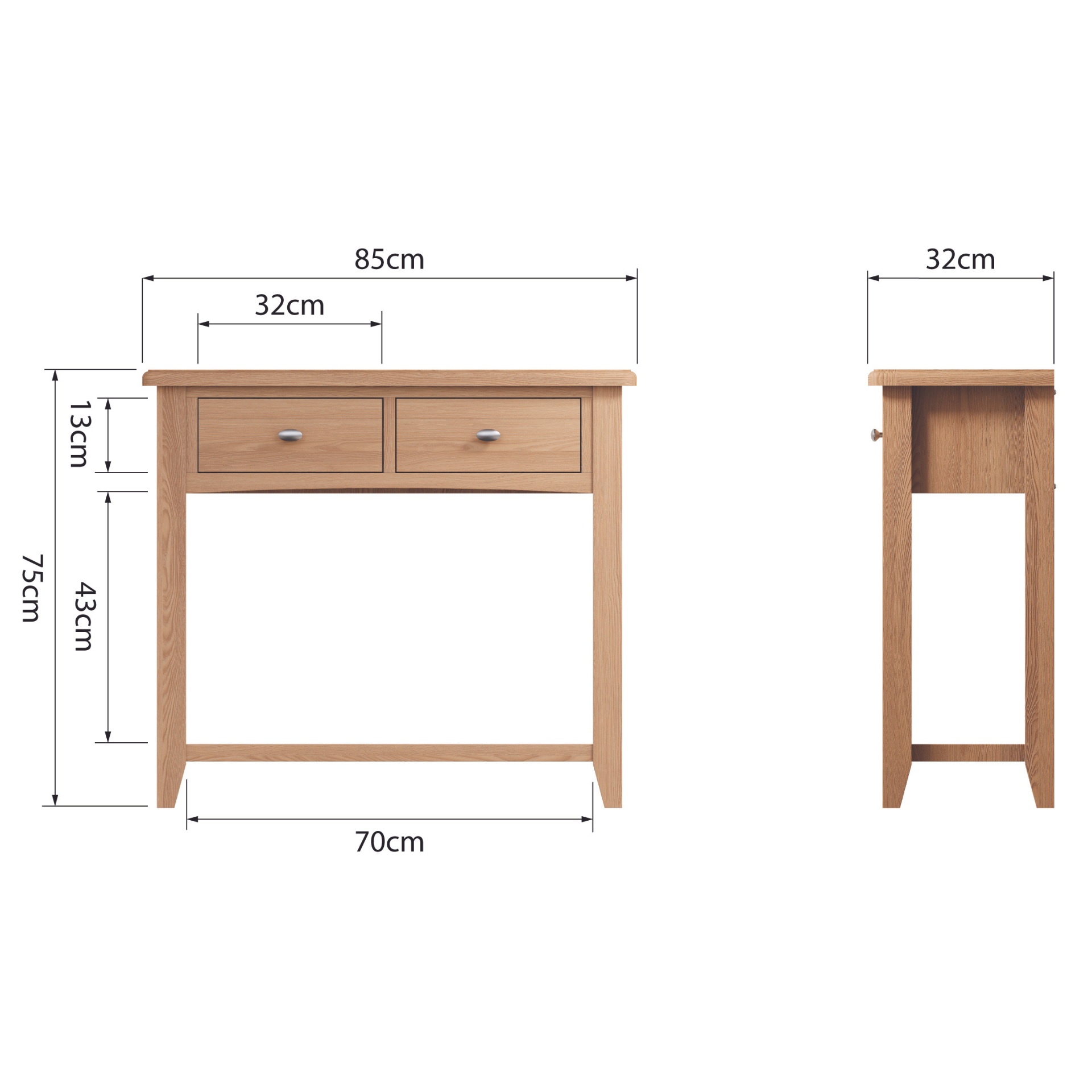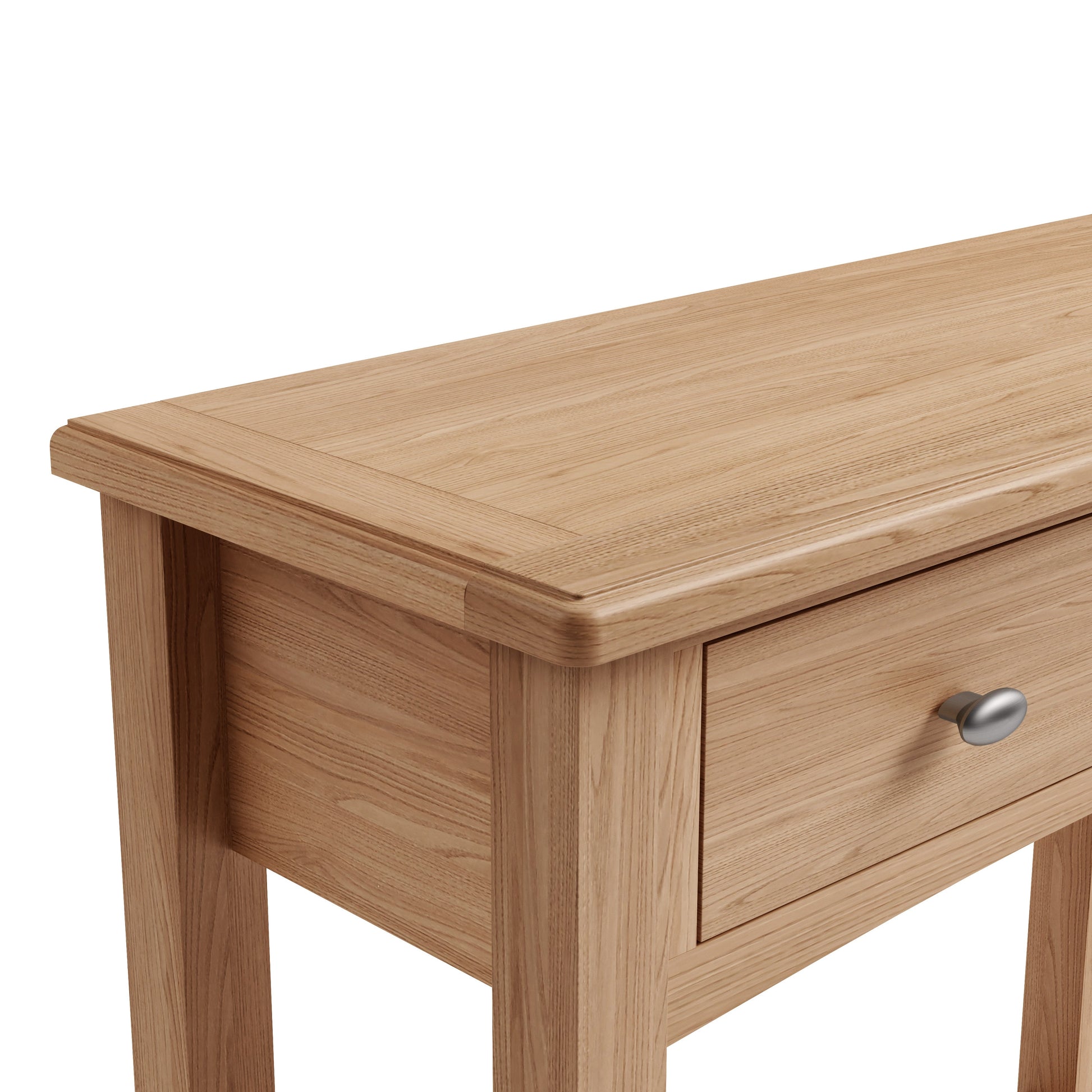 - Solid oak and oak veneer top, drawer fronts and front frame.