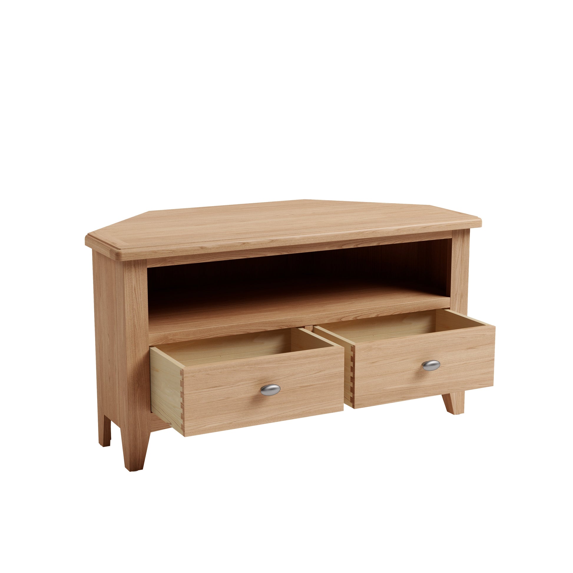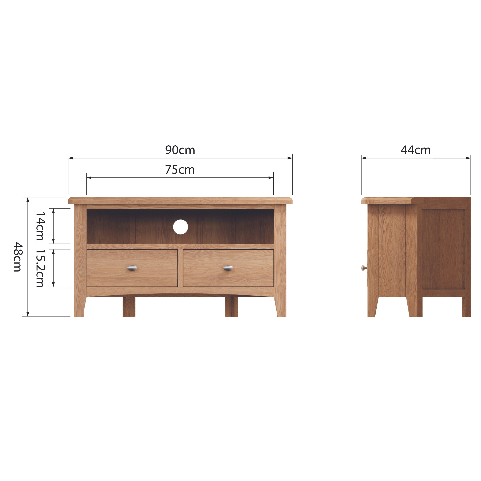 - Solid oak and oak veneer top, drawer fronts and front frame.