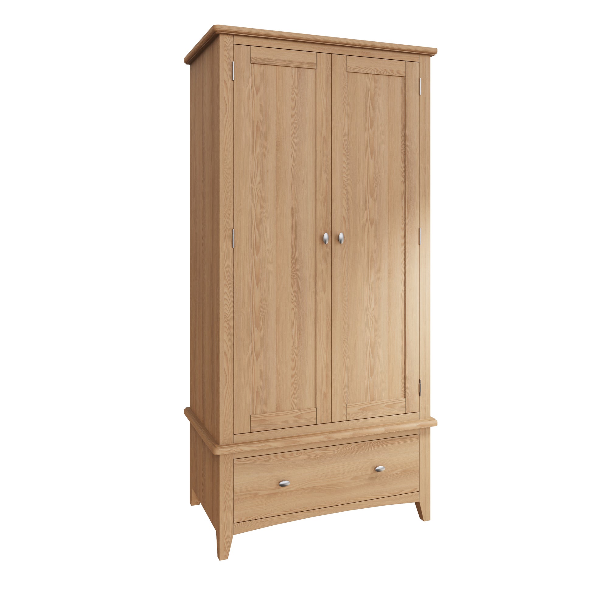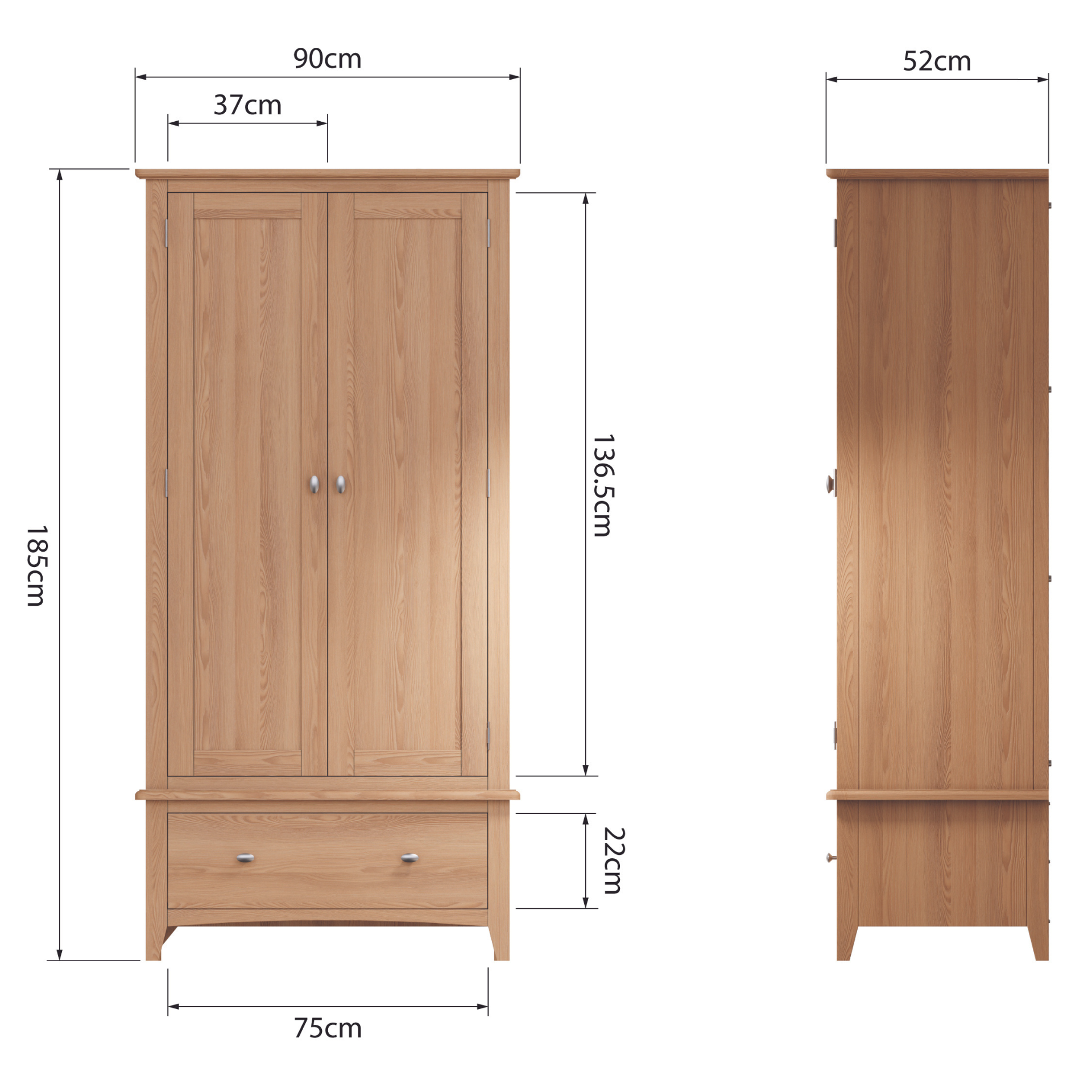 - Solid oak and oak veneer top, drawer fronts and front frame.