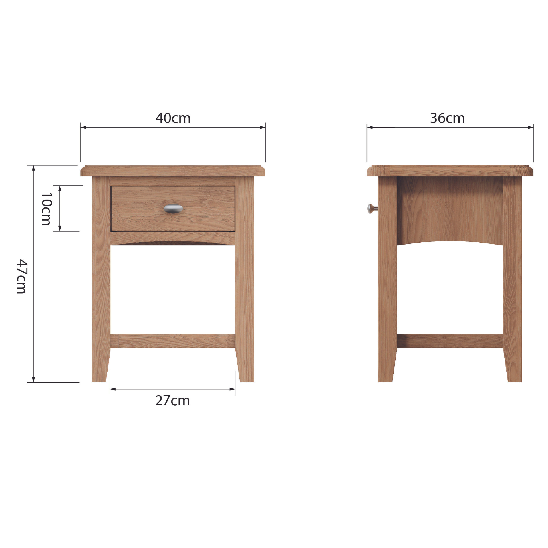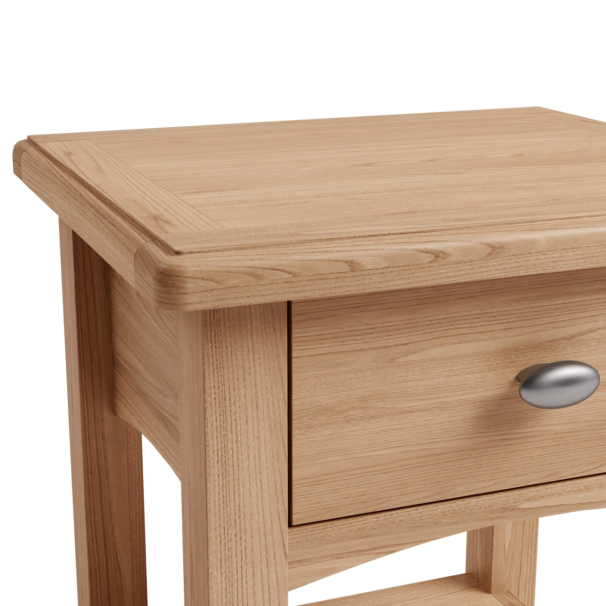 - Solid oak and oak veneer top, drawer fronts and front frame.