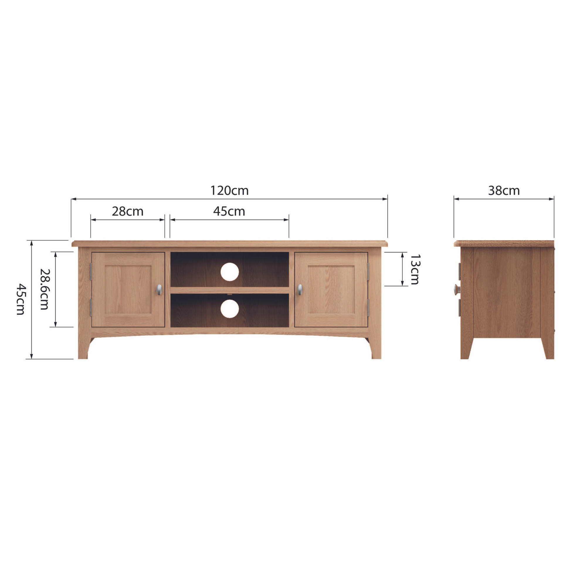 Dimensions (cm): H-45 W-120 D-38