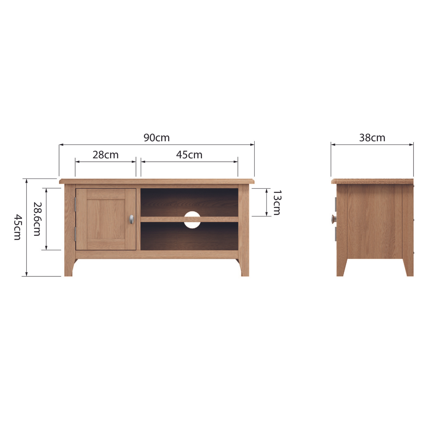- Solid oak and oak veneer top, drawer fronts and front frame.