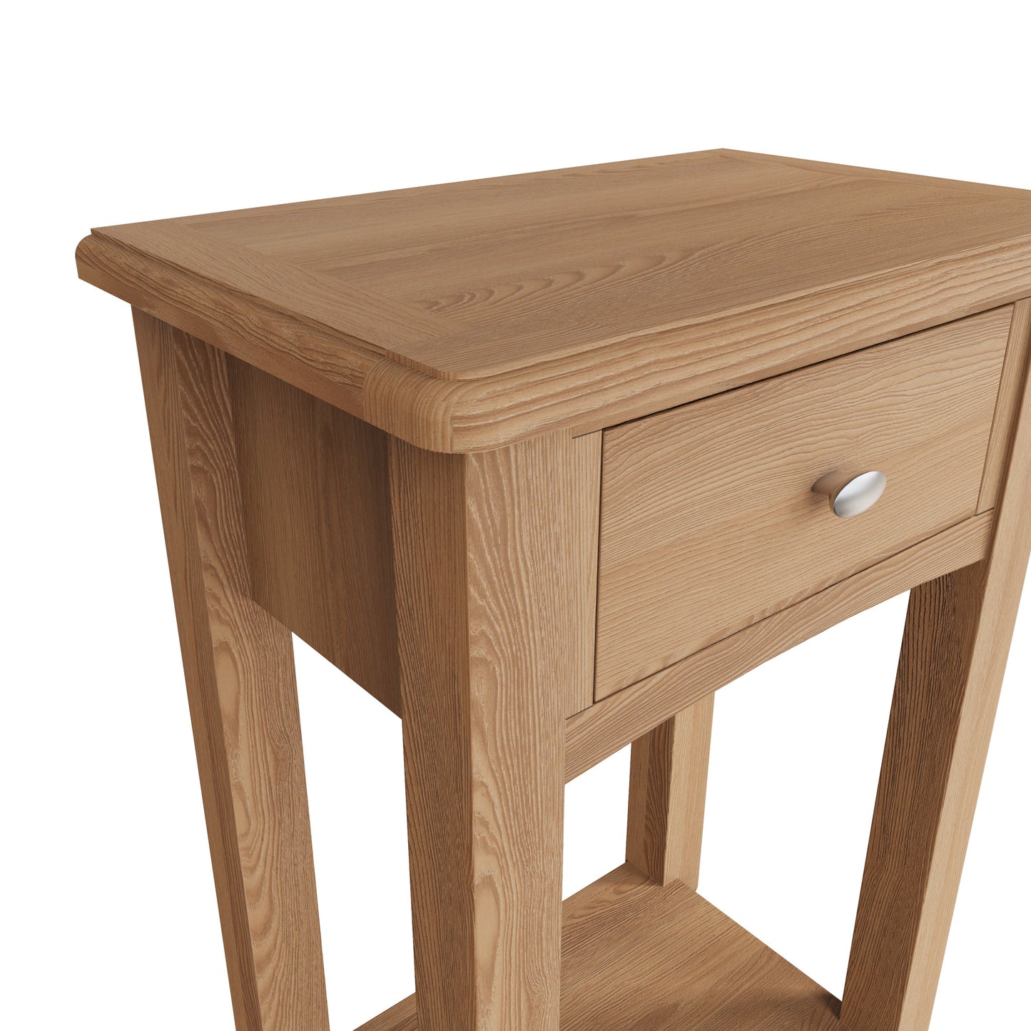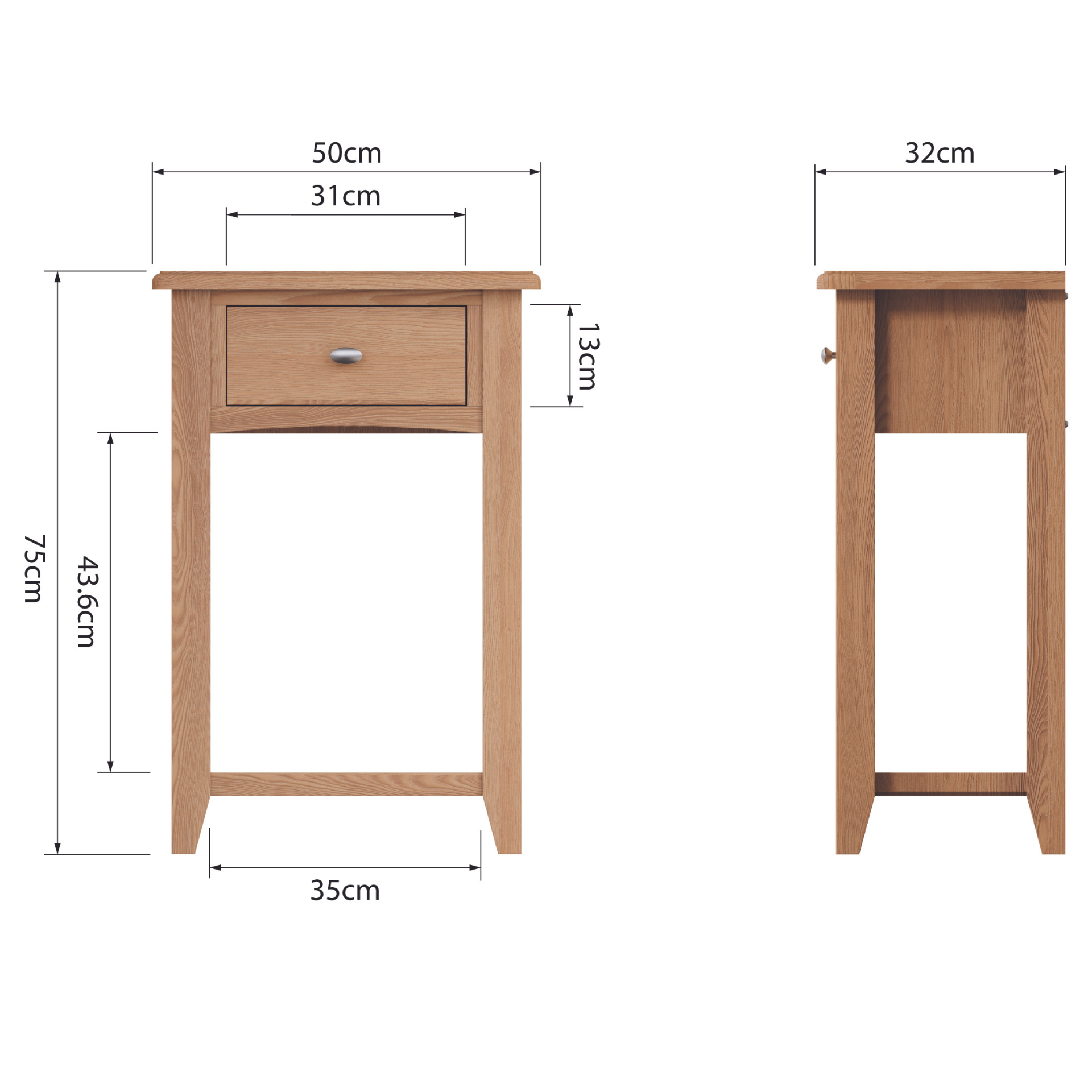 - Solid oak and oak veneer top, drawer fronts and front frame.