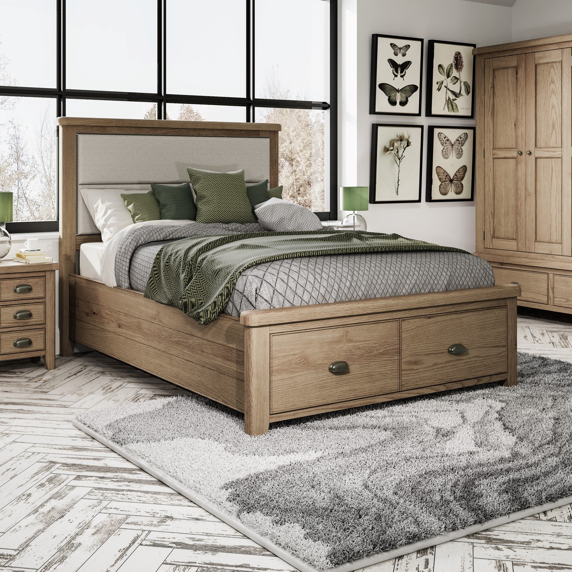 This bed comes with 4 different options. With a radiant warm oak finish and rounded corners, the Horner range bring a sumptuous and elegant traditional style that is set to complement any interior. Impressive quality runs through every detail of this range, from the thick oak tops and solid proportions through to the smooth gliding soft close drawers. Also available in a beautiful deep blue finish with Oak tops.