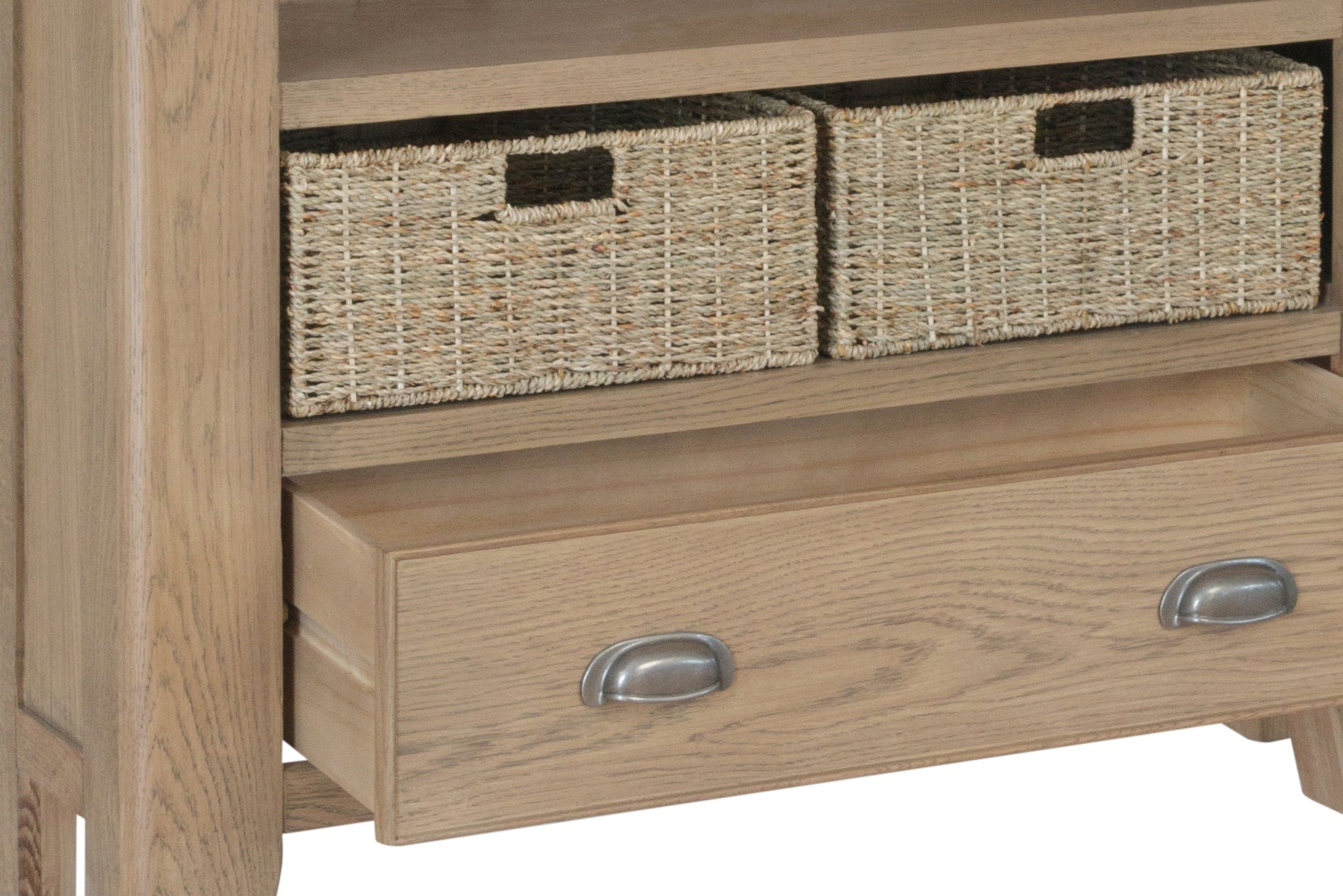 - Solid oak and oak veneer construction.