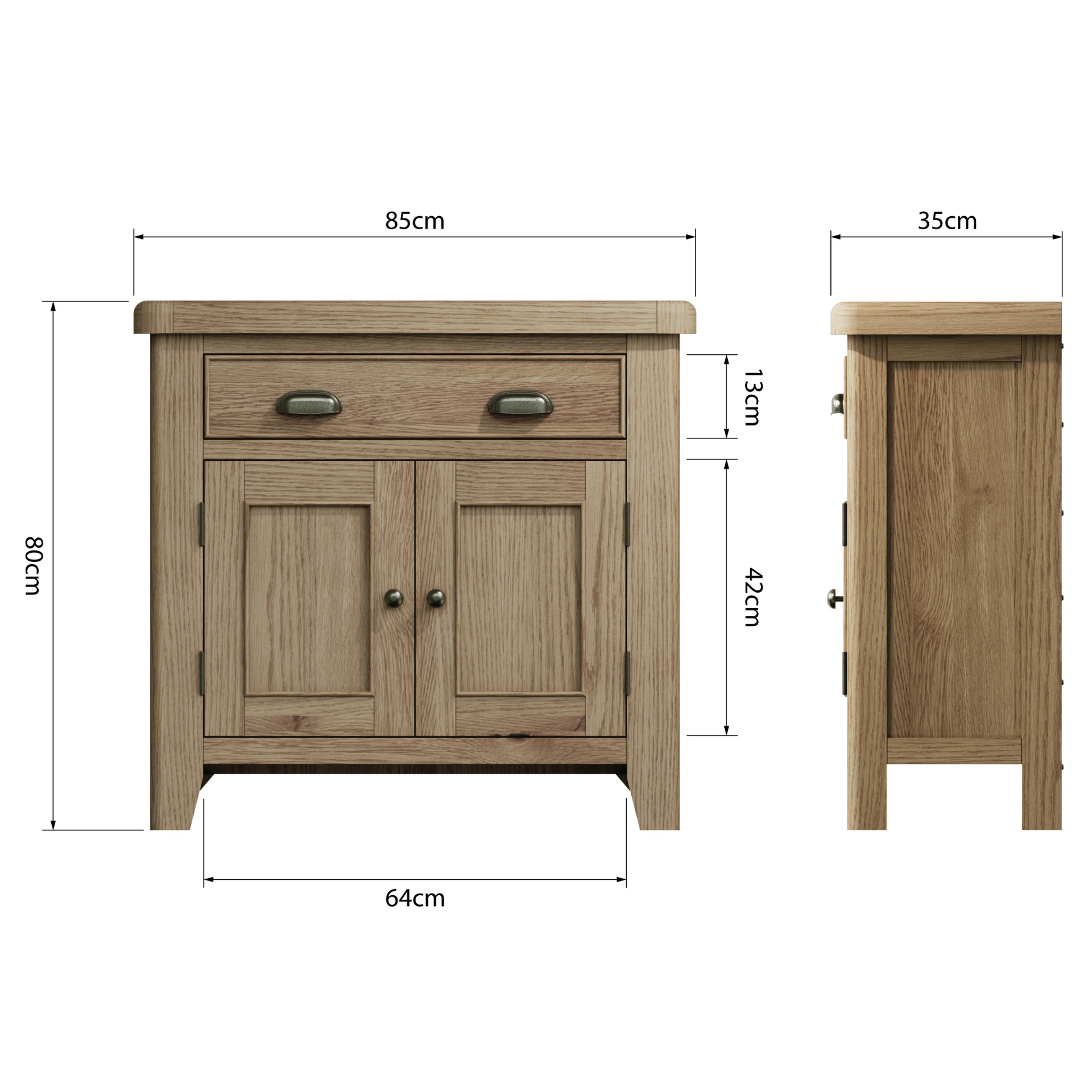 - Solid oak and oak veneer construction.