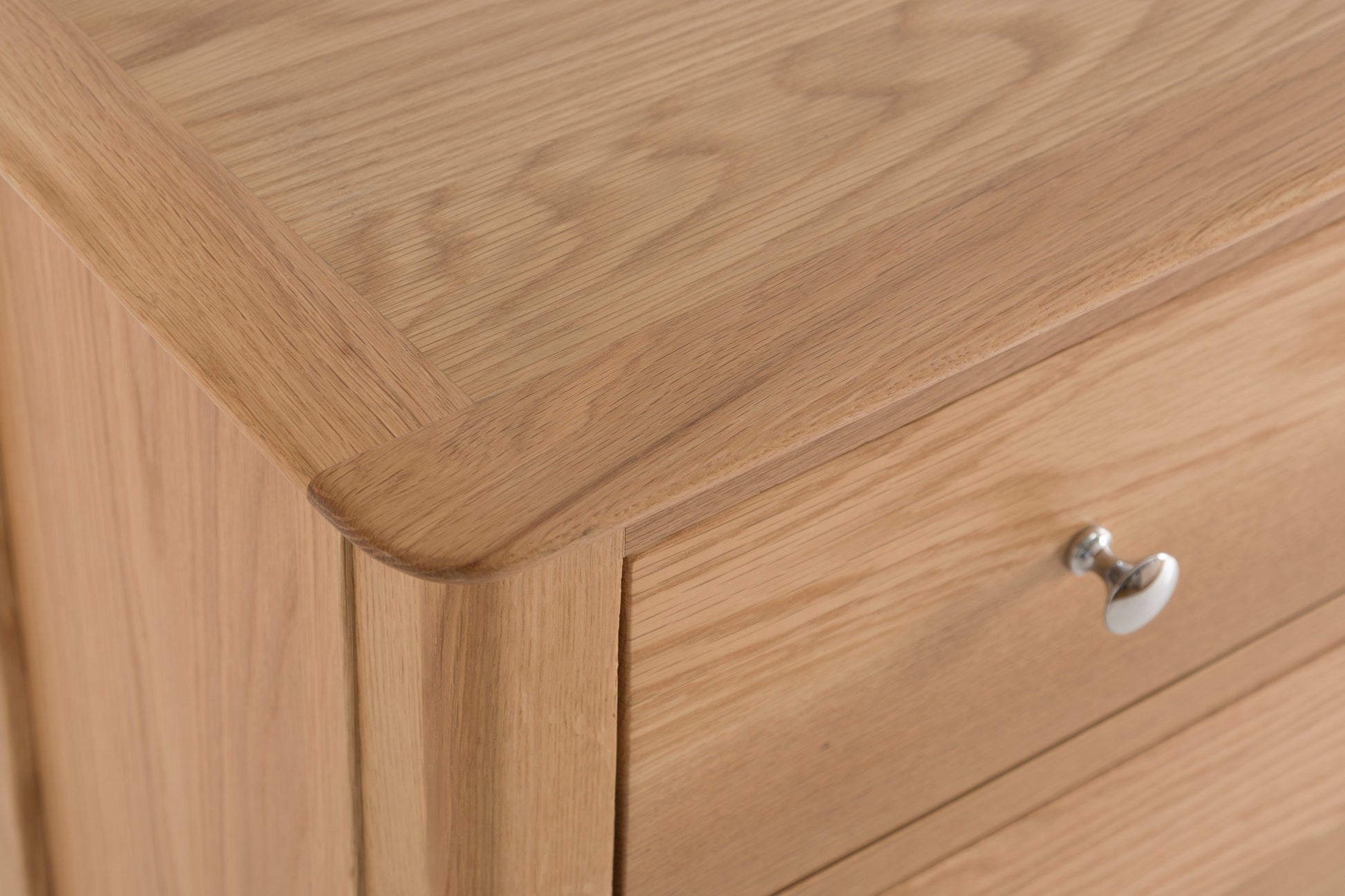 - Solid oak and oak veneer top, drawer fronts and front frame.