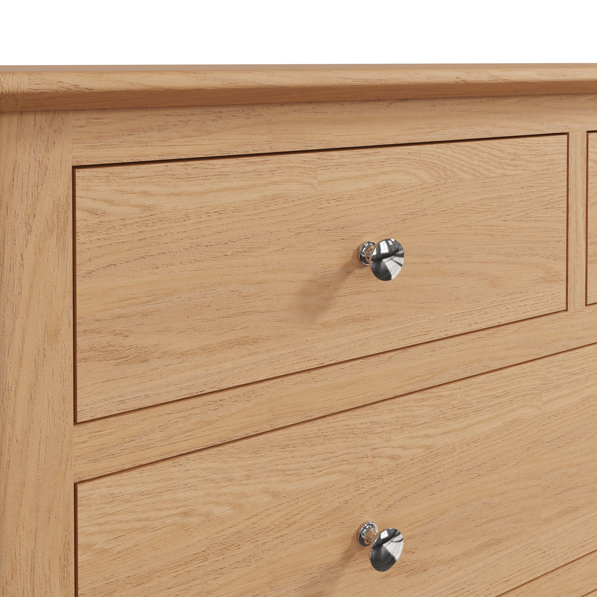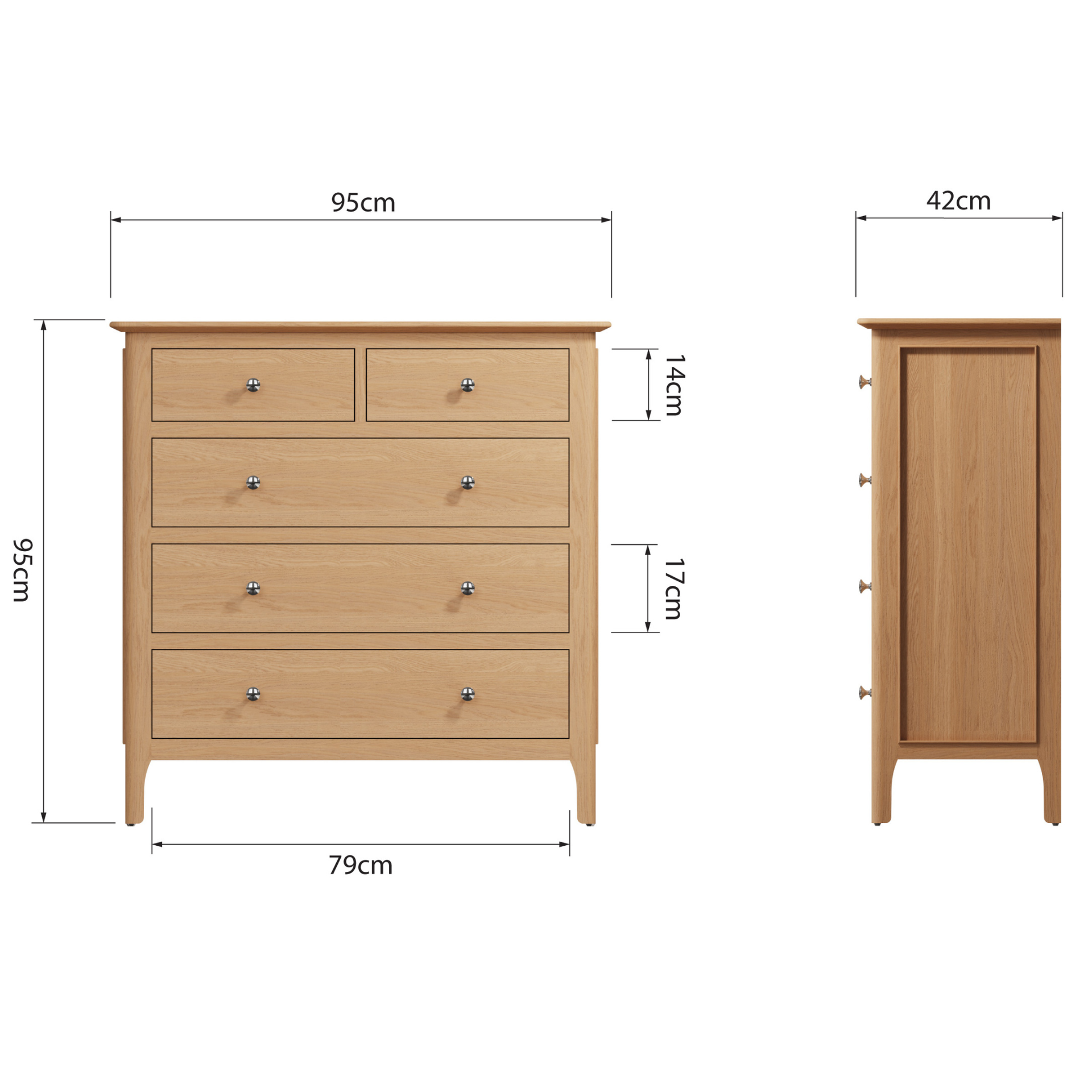 - Solid oak and oak veneer top, drawer fronts and front frame.