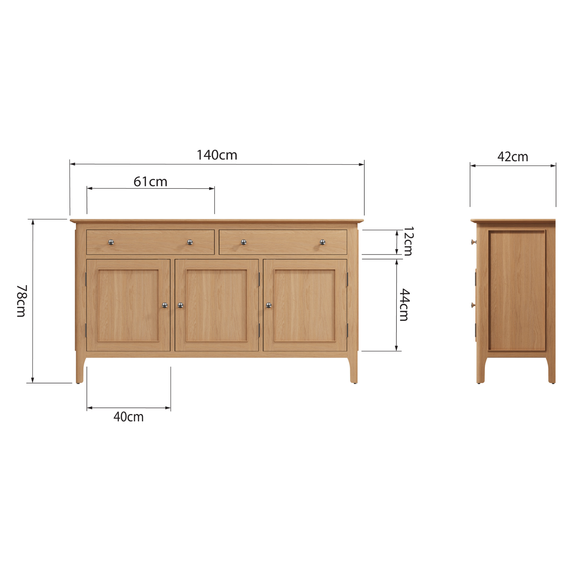 - Solid oak and oak veneer top, drawer fronts and front frame.