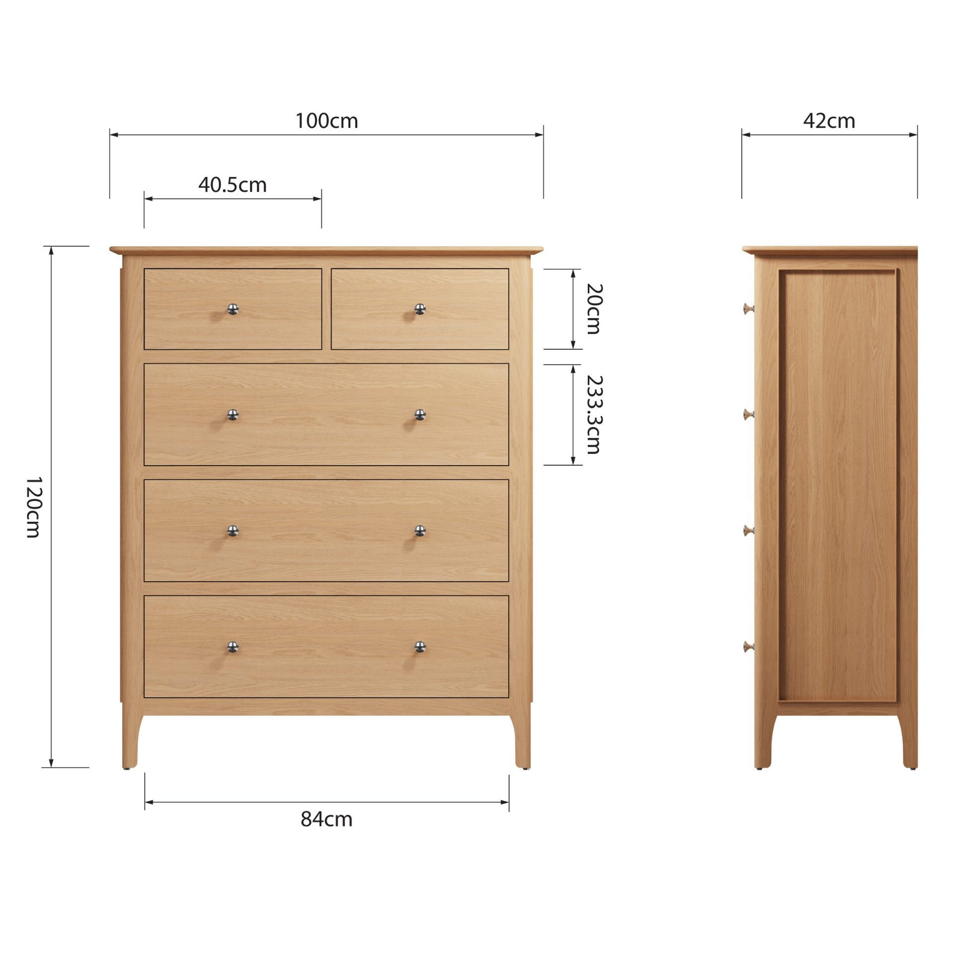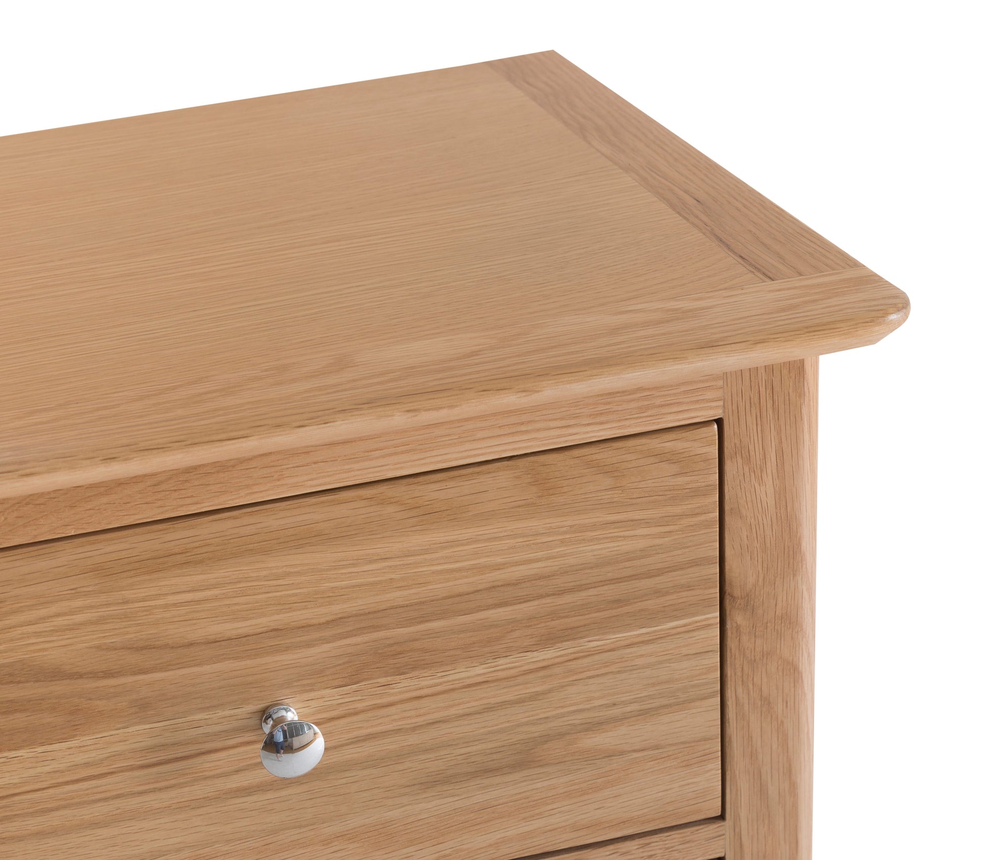- Solid oak and oak veneer top, drawer fronts and front frame.