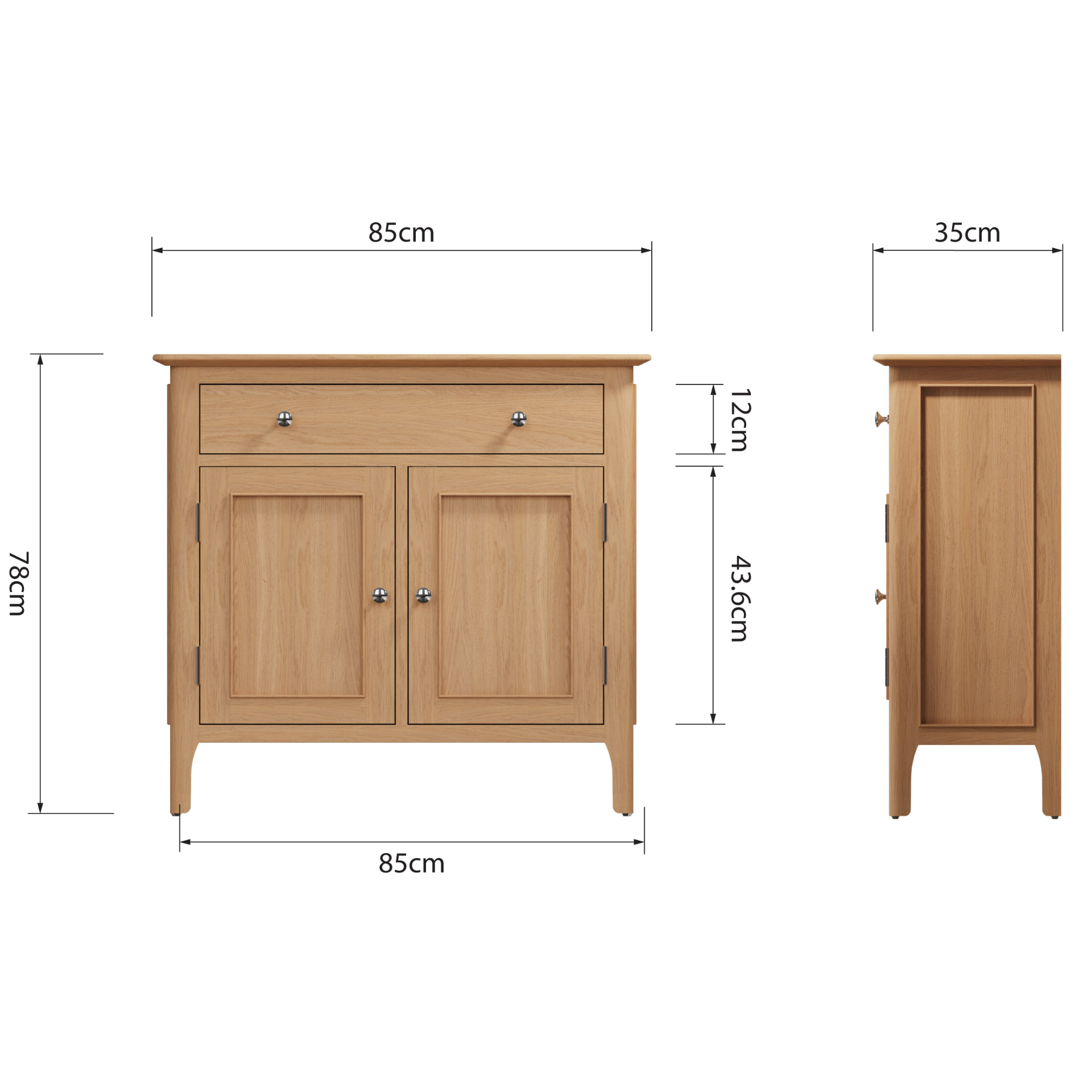 - Solid oak and oak veneer top, drawer fronts and front frame.