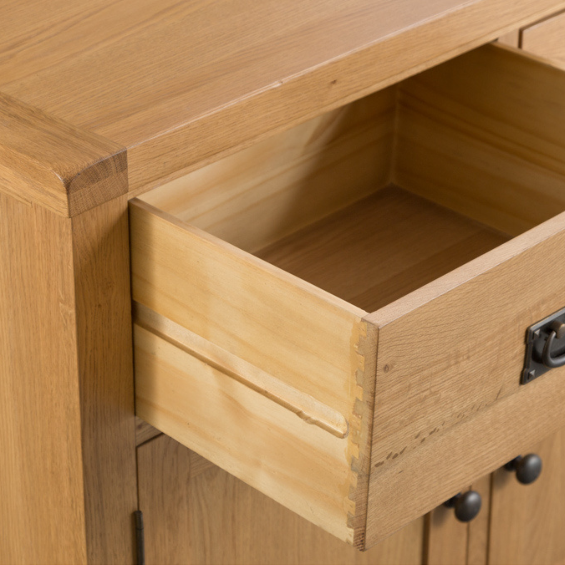 This oak collection is one of the most diverse available today, meaning that you can find the perfect item, whatever the style or size of your home. Beautifully made with a natural finish and antique brass effect handles for a rustic feel that brings a relaxed look to your home.