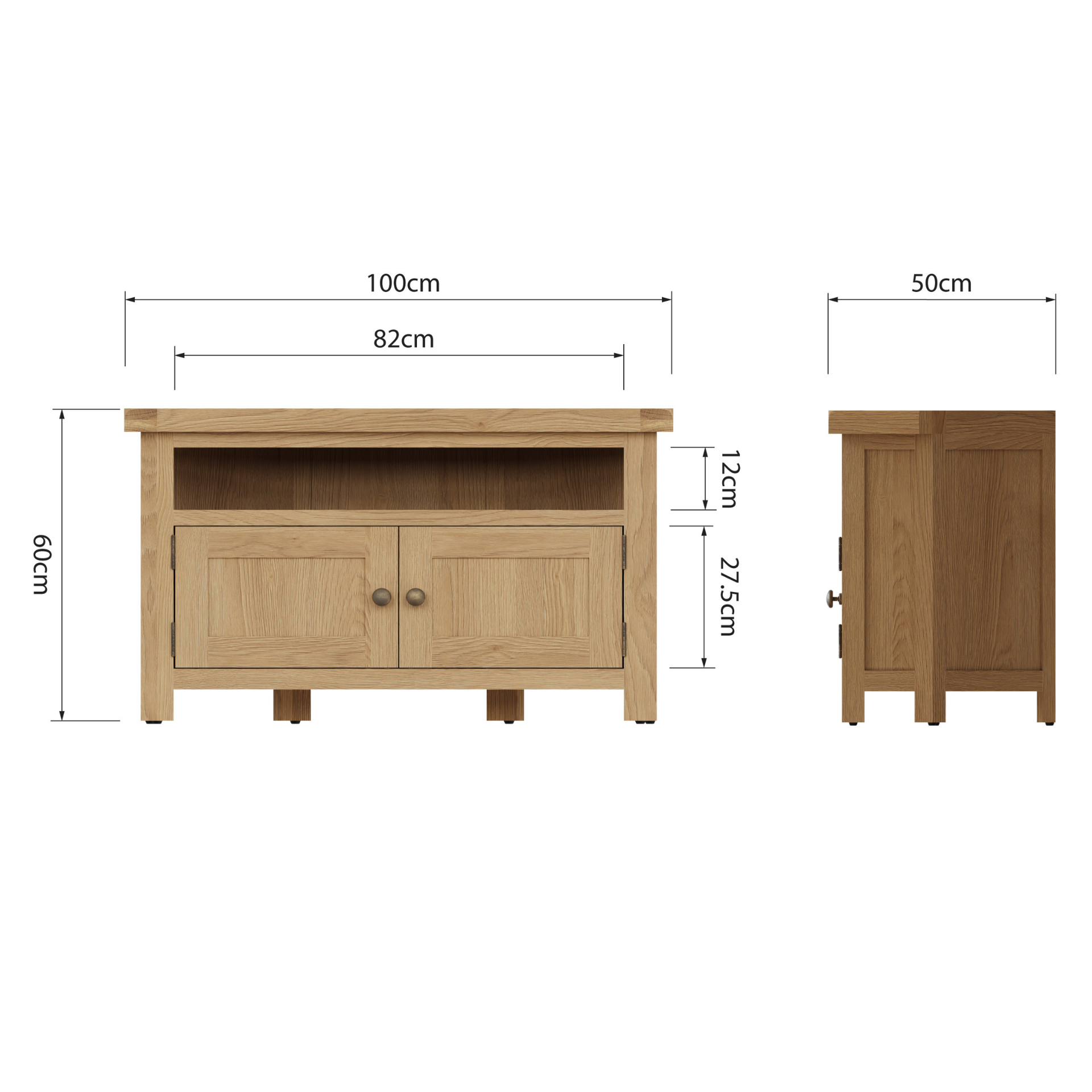 - Solid oak and oak veneer top, drawer fronts and front frame.