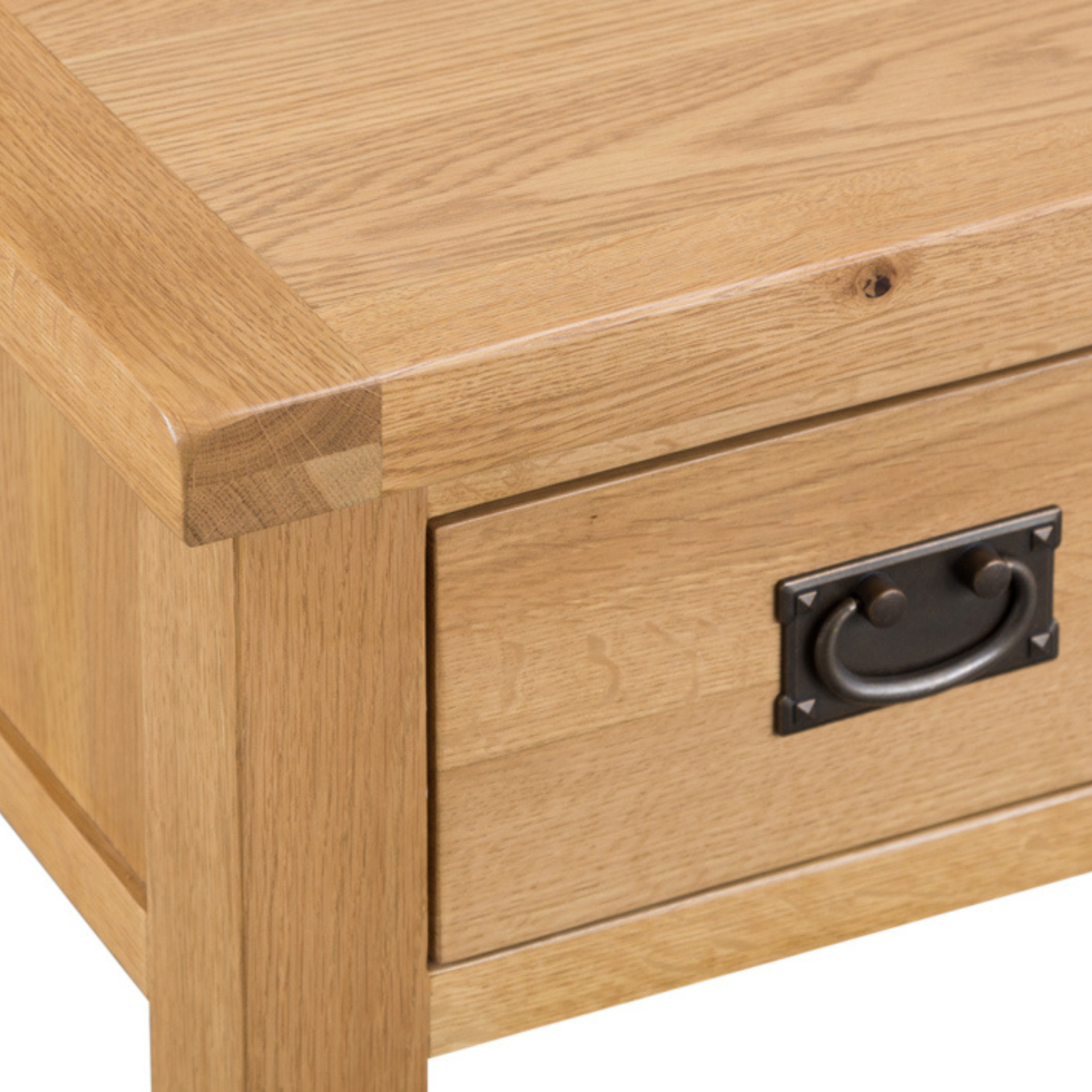 - Solid oak and oak veneer top, drawer fronts and front frame.
