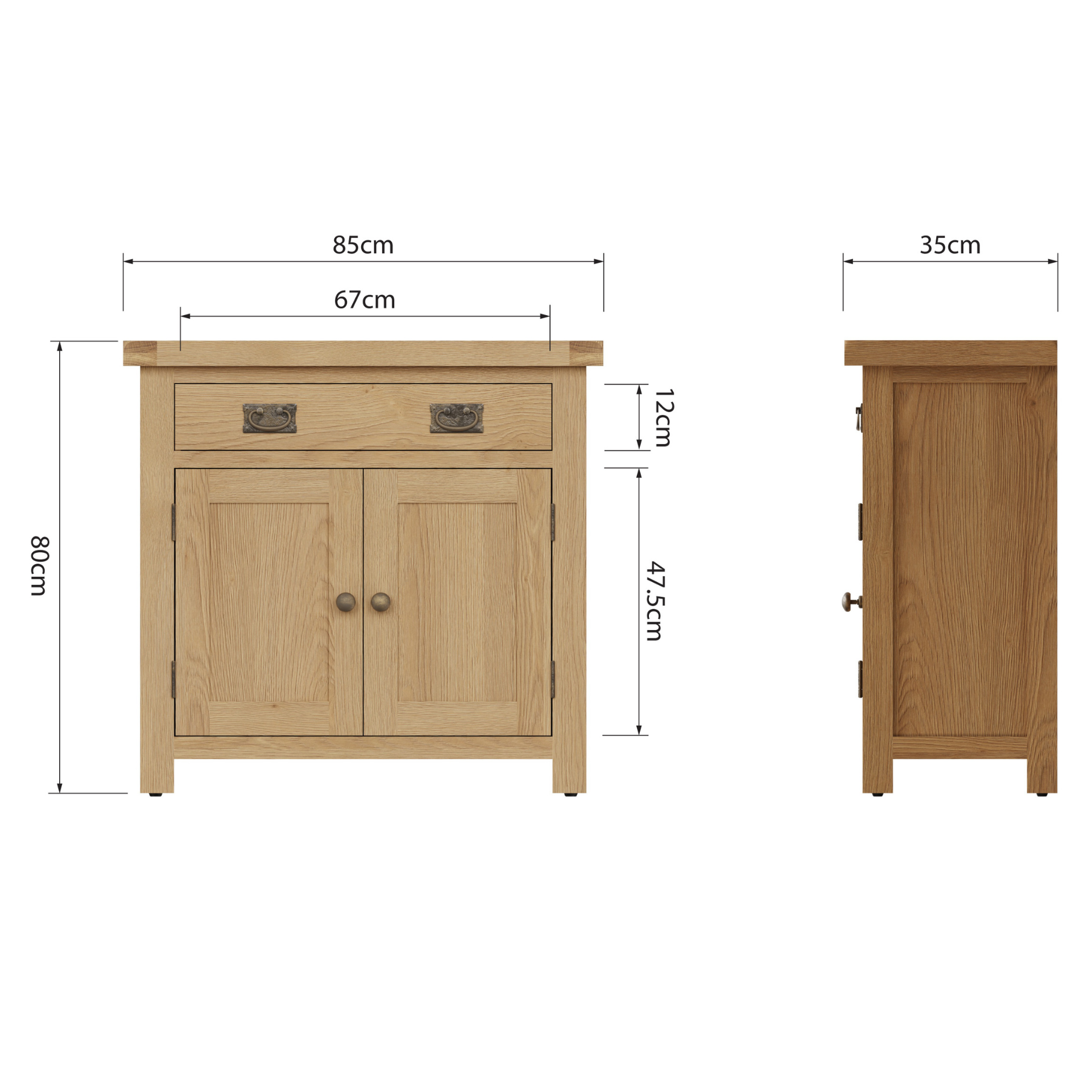 - Solid oak and oak veneer top, drawer fronts and front frame.