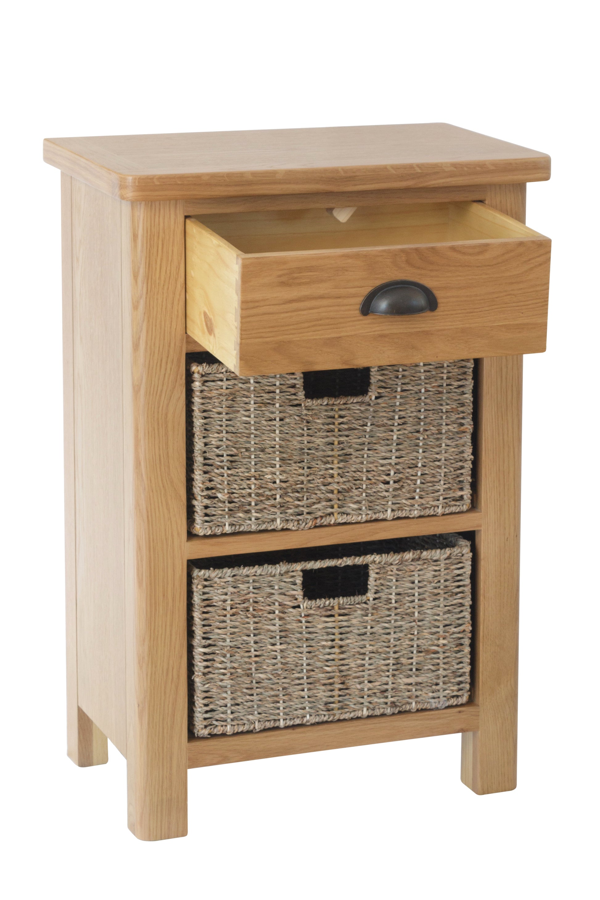 This oak collection is designed and manufactured to bring you exceptional value. The rustic oak finish with antique style cup handles and rounded corners means each item is designed to add traditional style to modern homes.
