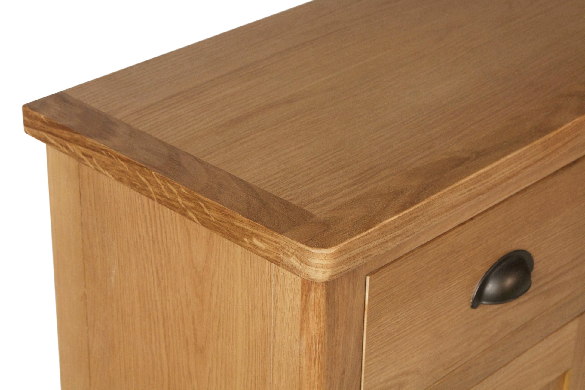 This oak collection is designed and manufactured to bring you exceptional value. The rustic oak finish with antique style cup handles and rounded corners means each item is designed to add traditional style to modern homes.