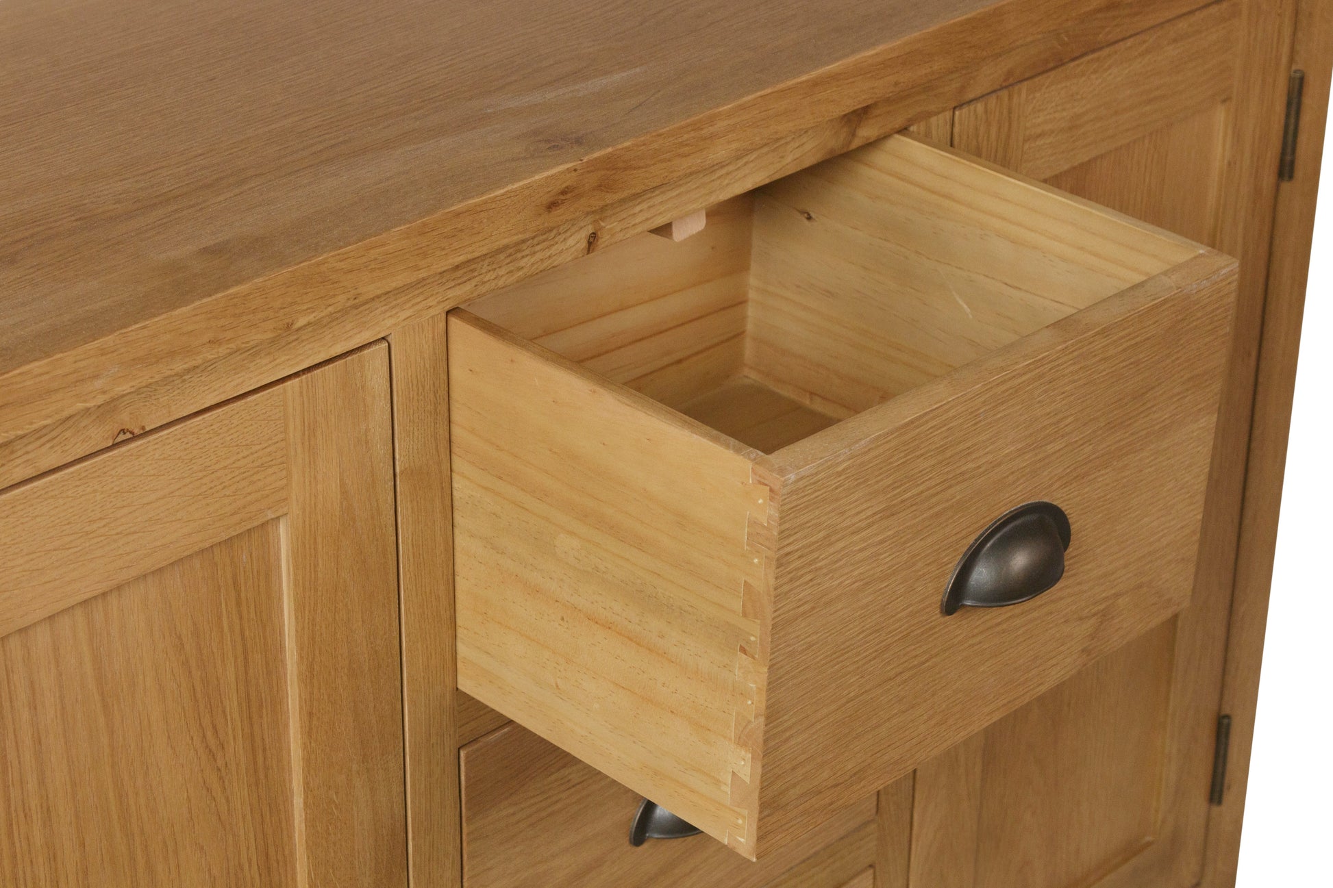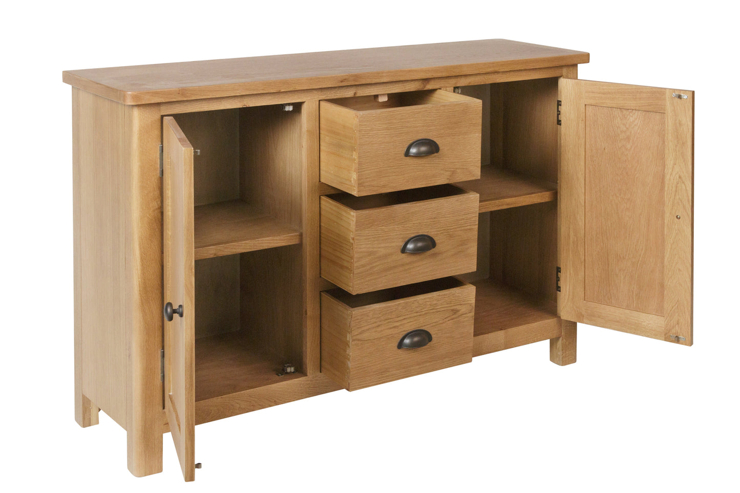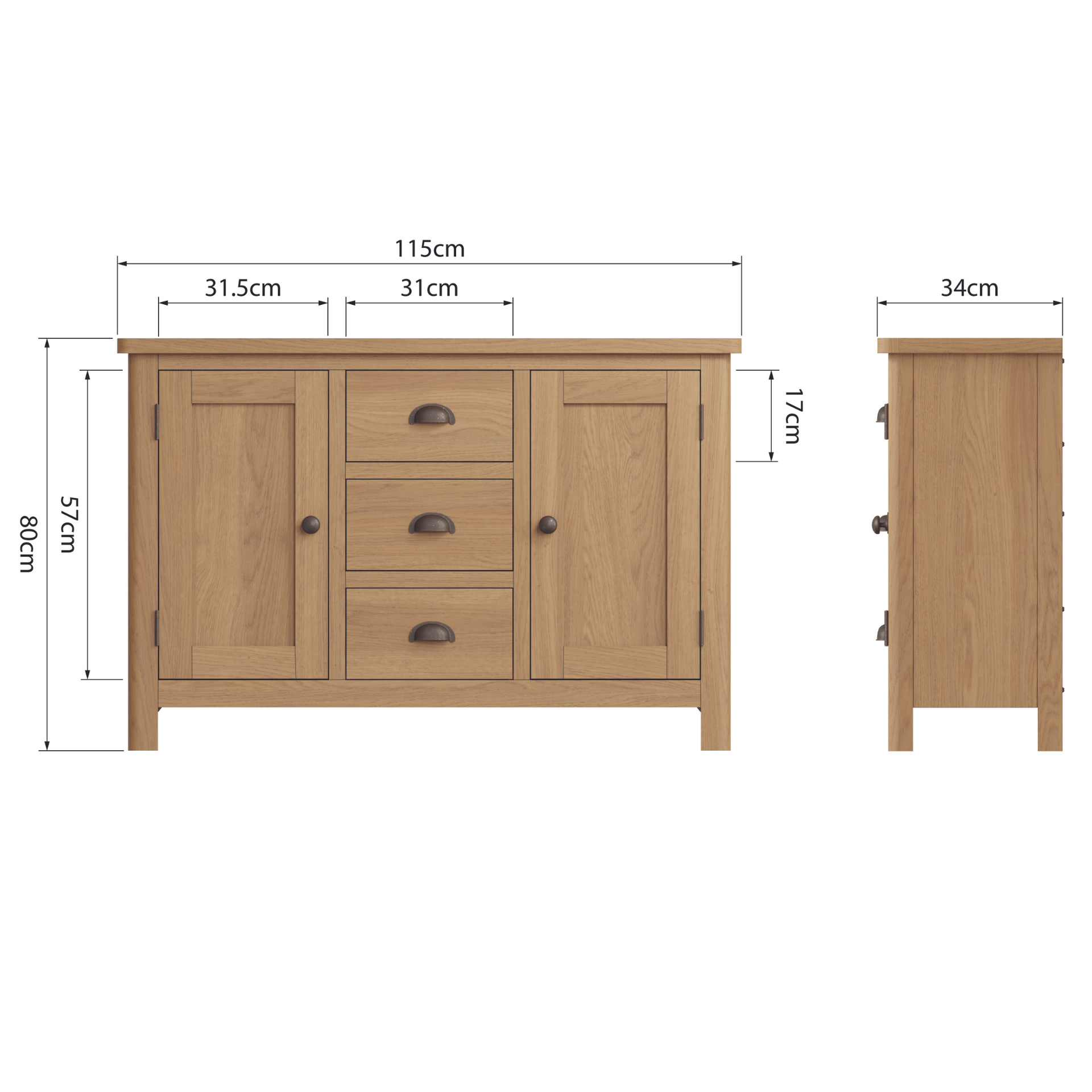 This oak collection is designed and manufactured to bring you exceptional value. The rustic oak finish with antique style cup handles and rounded corners means each item is designed to add traditional style to modern homes.