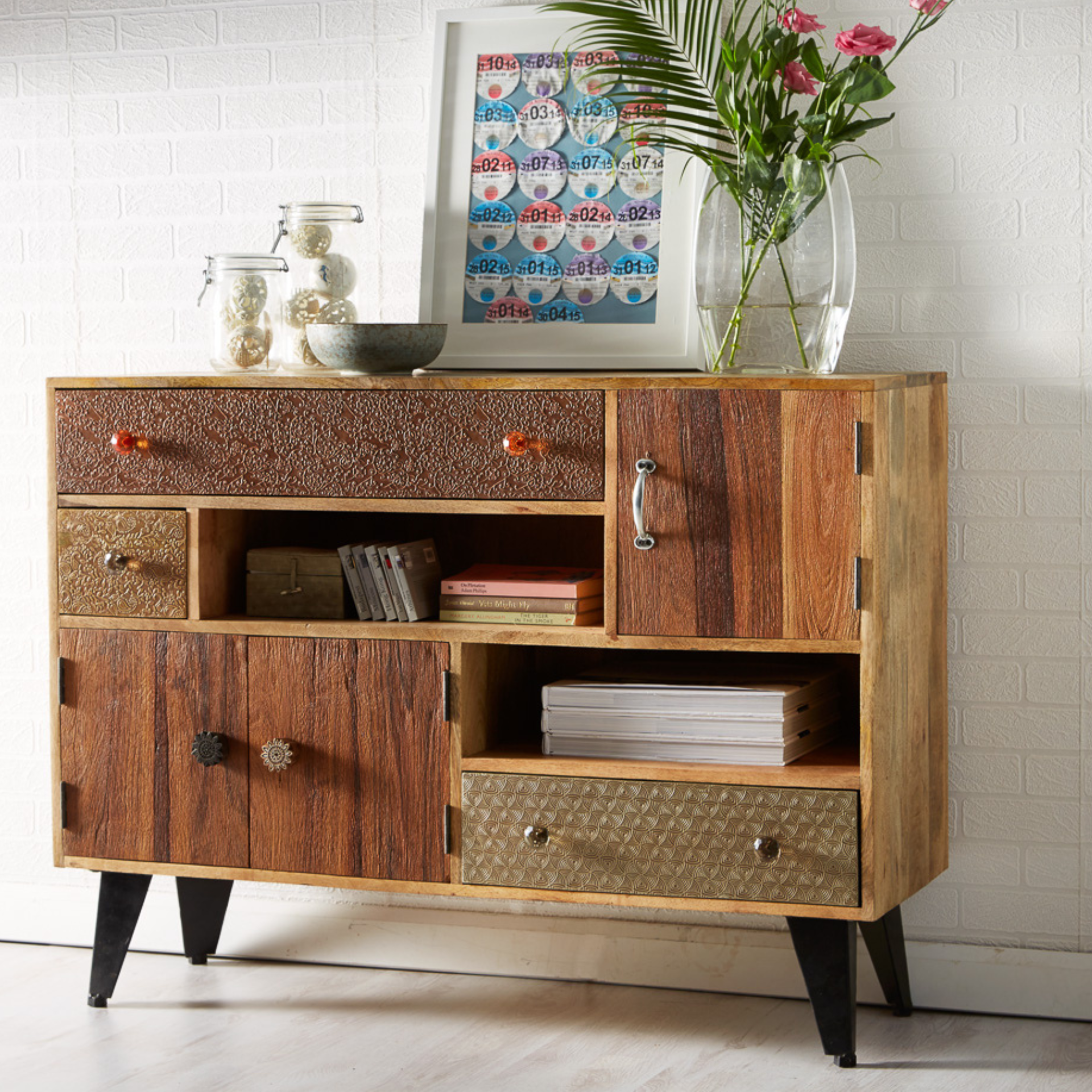This unique range has a combination of different front drawers and doors with different handles to match. Hand crafted by skilled craftsmen in India this range offers a new dimension to furniture.