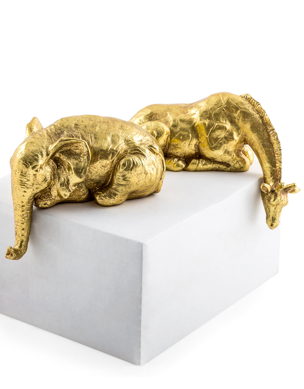 Bring a touch of charm to your home with this set of 2 "Peering Over" Giraffe and Elephant Figures. Available in Silver or Gold, these enchanting figures add a playful and stylish touch to any room, and are the perfect reminder of the beauty and wonder of the natural world. Display them together or separately to add a touch of whimsy to your décor.