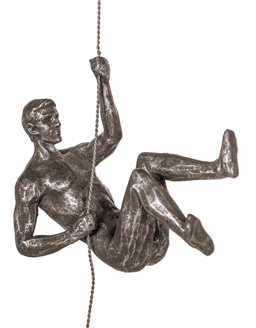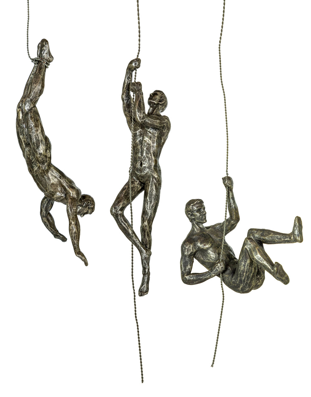 Experience the thrill of abseiling with this set of 3 wall figures. Each man hangs in a unique position, adding dimension to your walls. The antique silver or antique copper finish adds a touch of elegance. Bring the excitement of the outdoors into your home with this captivating piece.