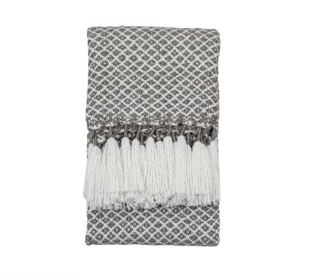 A Stylish throw with its detailed woven design and charming large cream tassels, perfect to suit all interiors.